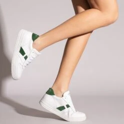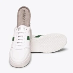 Baskets BLANC en cuir pour femme Printemps – EtĂ© 21. Une sneaker classique avec petits trous et ornements VERT qui combinent avec la partie arrière du talon, qui a une gravure du logo miMaO ainsi que sur la languette. Cette basket pour femme intègre la semelle intĂ©rieure amovible Memory Absorber Foam, une chaussure de sport confortable pour tous le quotidien que vous ne voudrez plus enlever.