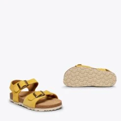 Sandales fille JAUNE Bio en cuir nubuck. Ces sandales pour enfant sont fermĂ©es par deux boucles dorĂ©es qui garantissent un maintien parfait du pied. De plus, cette sandale pour fille possède une semelle intĂ©rieure en cuir Ultra Confort Gel qui s’adaptera parfaitement Ă votre pied. Sandales pour enfant JAUNE avec semelle en caoutchouc antidĂ©rapante pour protĂ©ger chacun des pas de vos enfants. Achetez en ligne des chaussures pour enfant Printemps EtĂ© 2021. Disponible dans vos couleurs prĂ©fĂ©rĂ©es. Sandales BIO pour fille en cuir nubuck Sandales JAUNE fille Sandales pour enfant avec fermeture Ă boucle Technologie du confort: semelle intĂ©rieure en cuir Ultra Confort Gel Semelle en caoutchouc antidĂ©rapante Chaussures pour enfant fabriquĂ©es en Espagne