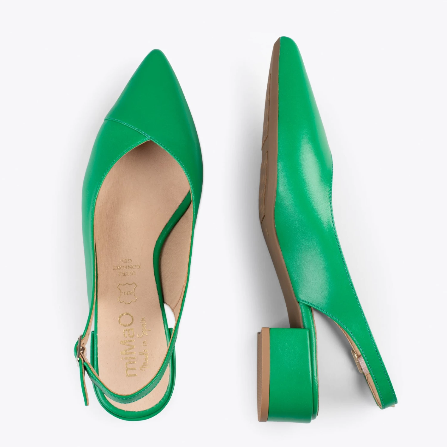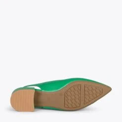 Le talon de ces chaussures est large et encastré, donnant l’impression d’une plus grande hauteur. Ces chaussures sont dotées d’une semelle antidérapante, ce qui garantit une stabilité totale sur n’importe quelle surface.