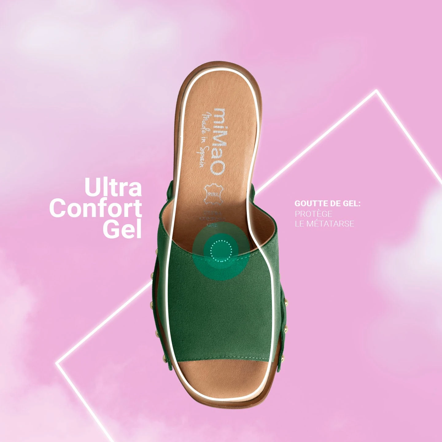 Technologie de Confort: semelle en cuir respirante Goutte Ultra Confort Gel