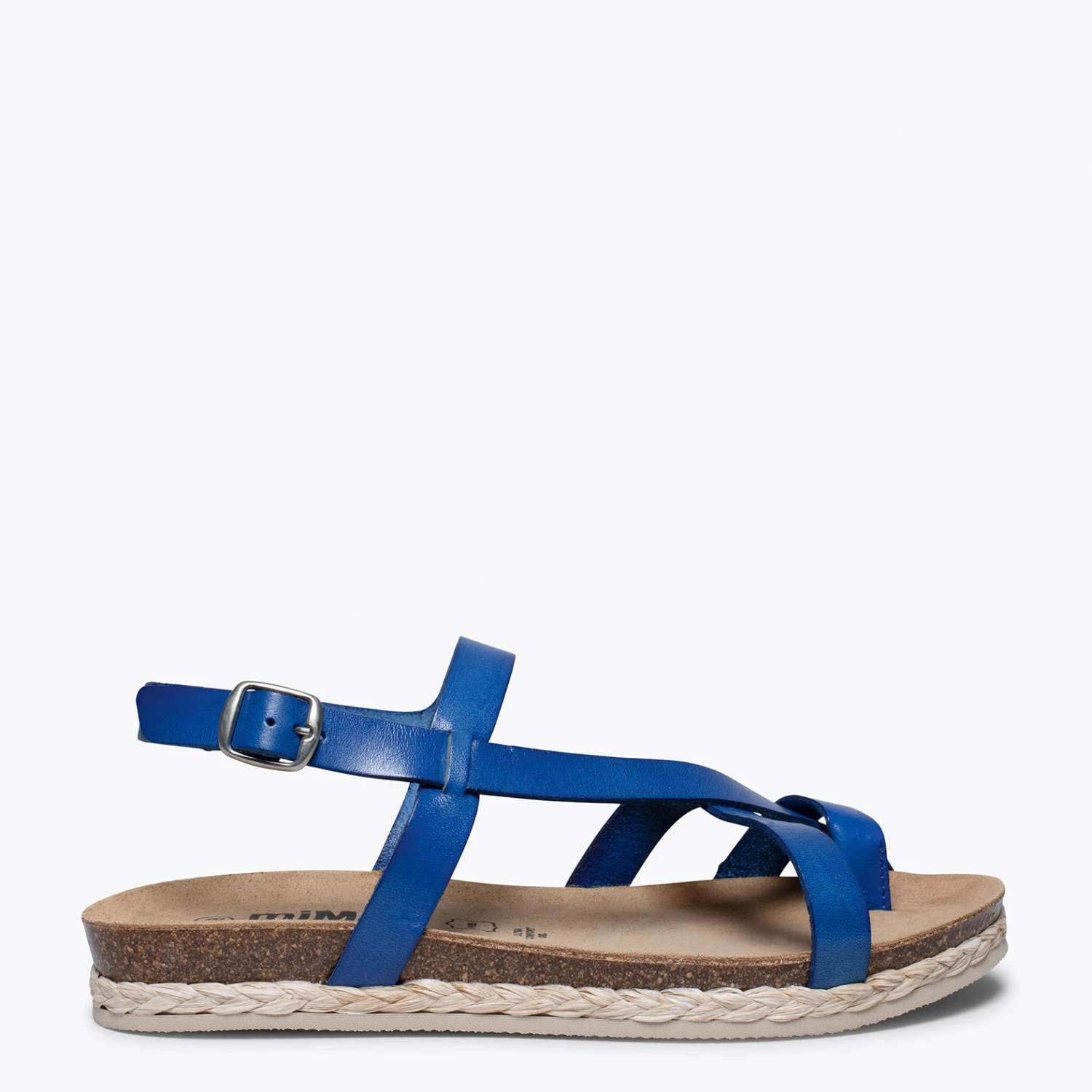 Découvrez ces sandales BIO BLEU en cuir nappa. Grâce à la semelle intérieure ultra confort gel, elles deviendront vos sandales préférées cette saison printemps été 2020. De plus, la fermeture à la cheville a une boucle, vous permettant ainsi de les fixer très facilement et de les ajuster parfaitement. Le maintien de cette chaussure est également parfait grâce à ses multiples sangles qui s’adaptent au pied. Cette chaussure d’été BLEU a un compensé BIO combiné avec une tresse en raphia, elle sera non seulement légère et flexible, mais aussi design qui les mettra en valeur.