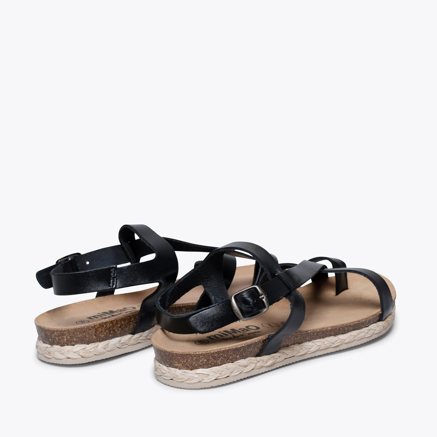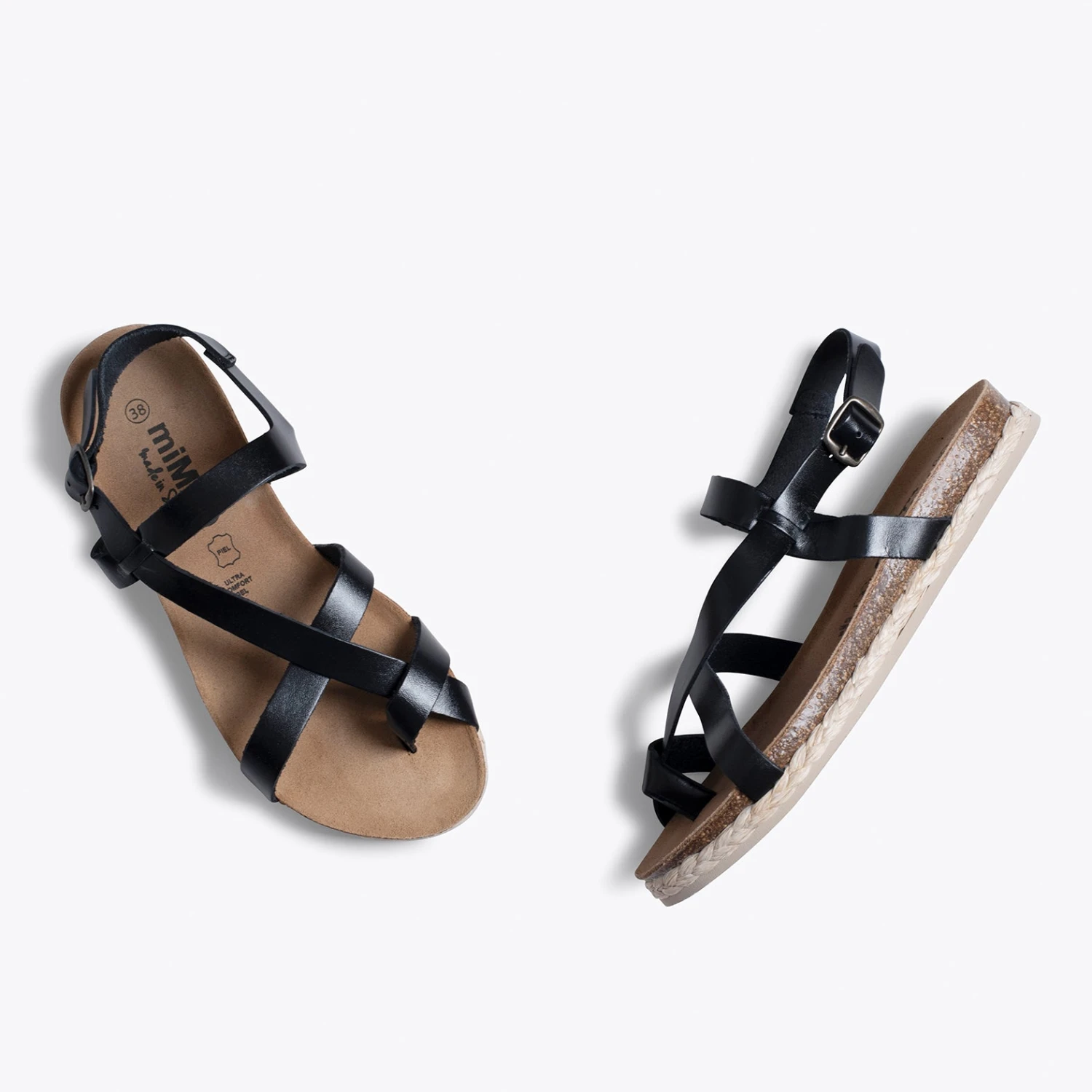 DĂ©couvrez ces sandales BIO NOIR en cuir nappa. Grâce Ă la semelle intĂ©rieure ultra confort gel, elles deviendront vos sandales prĂ©fĂ©rĂ©es cette saison printemps Ă©tĂ© 2020. De plus, la fermeture Ă la cheville a une boucle, vous permettant ainsi de les fixer très facilement et de les ajuster parfaitement. Le maintien de cette chaussure est Ă©galement parfait grâce Ă ses multiples sangles qui s’adaptent au pied. Cette chaussure d’Ă©tĂ© NOIR a un compensĂ© BIO combinĂ© avec une tresse en raphia, elle sera non seulement lĂ©gère et flexible, mais aussi design qui les mettra en valeur.