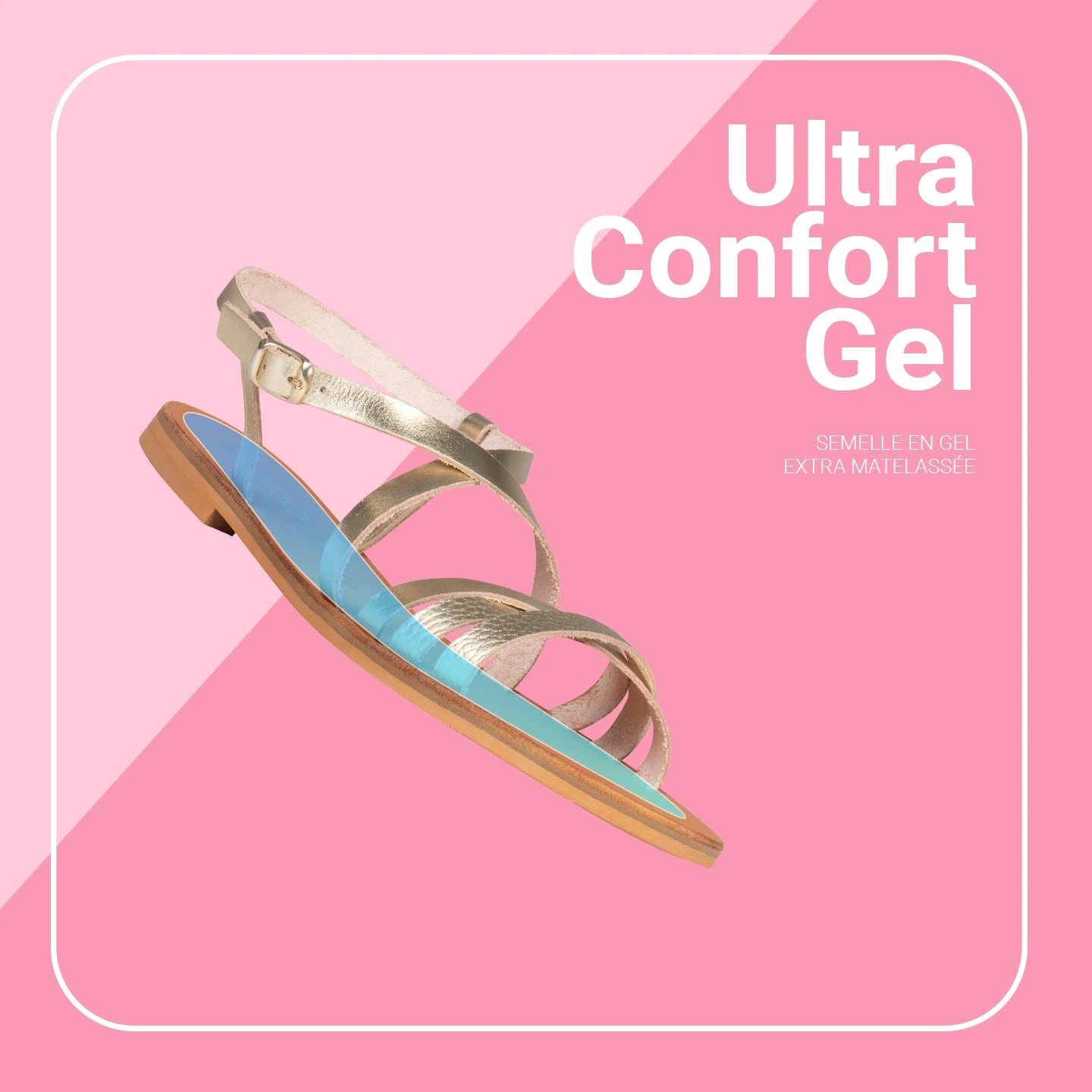 Son muy flexibles gracias a su triple suelo, contando con la plantilla Ultra confort gel. Ces sandales sont très flexibles grâce à leur triple semelle, qui intègre une couche en gel Ultra confort.