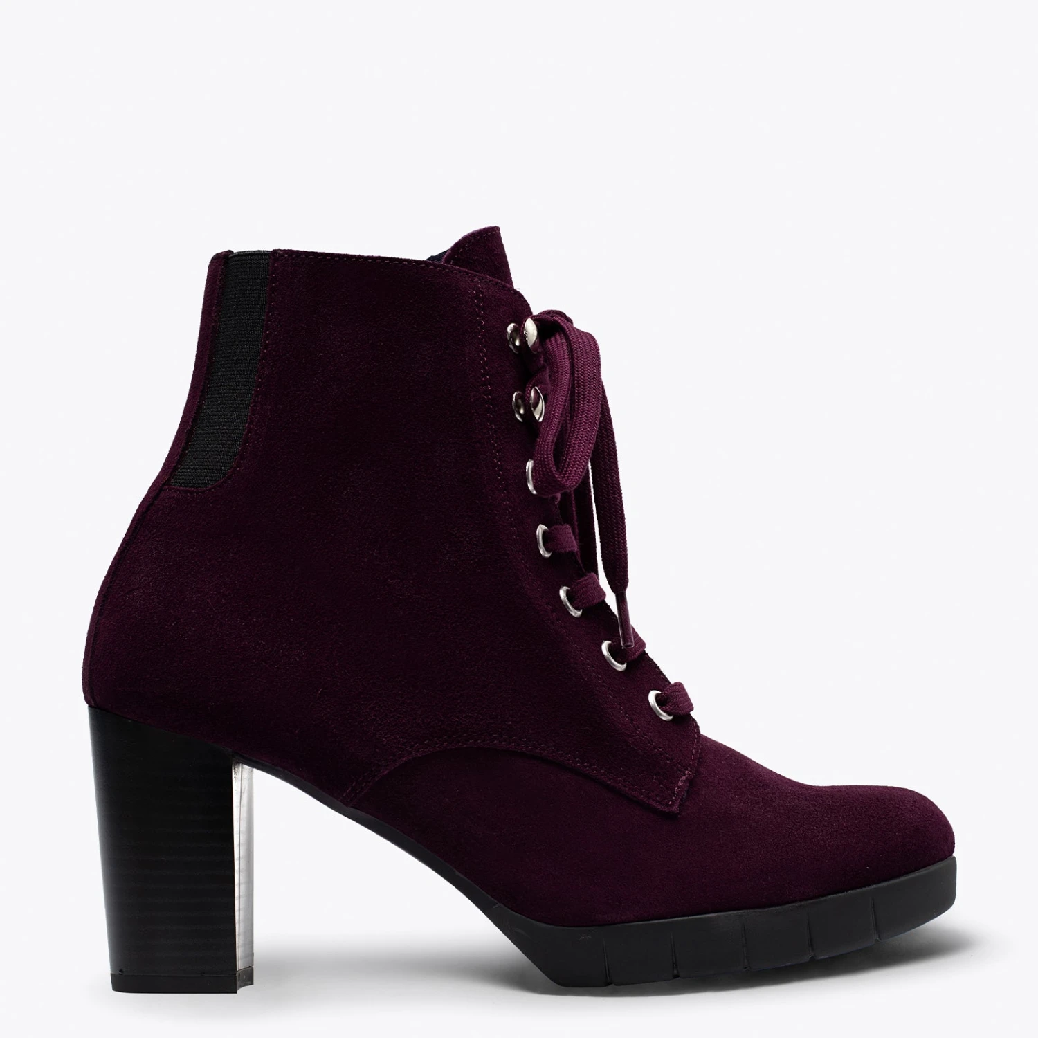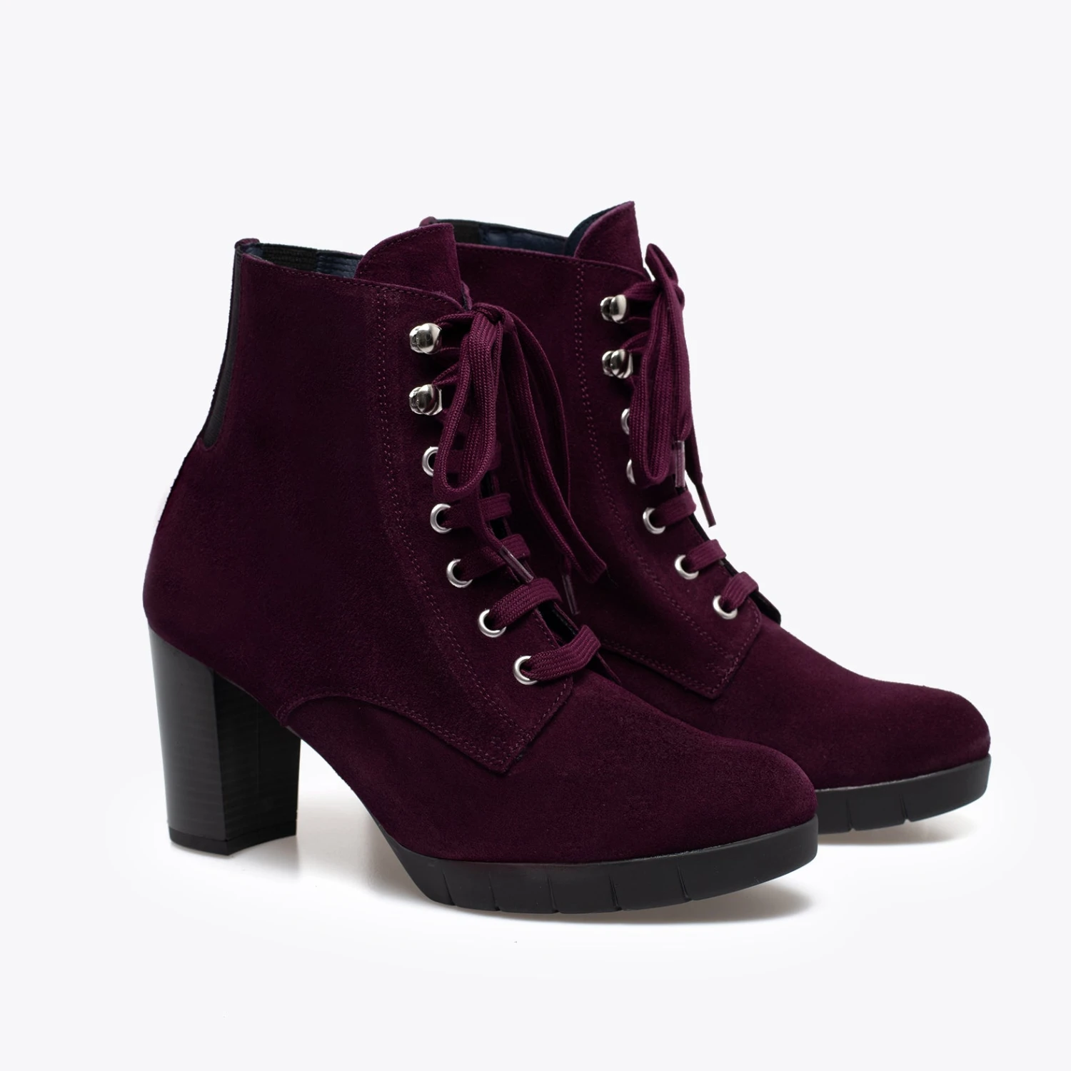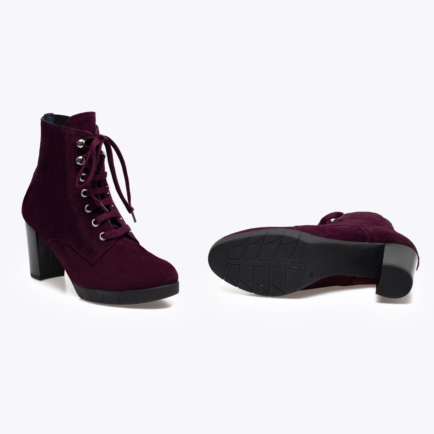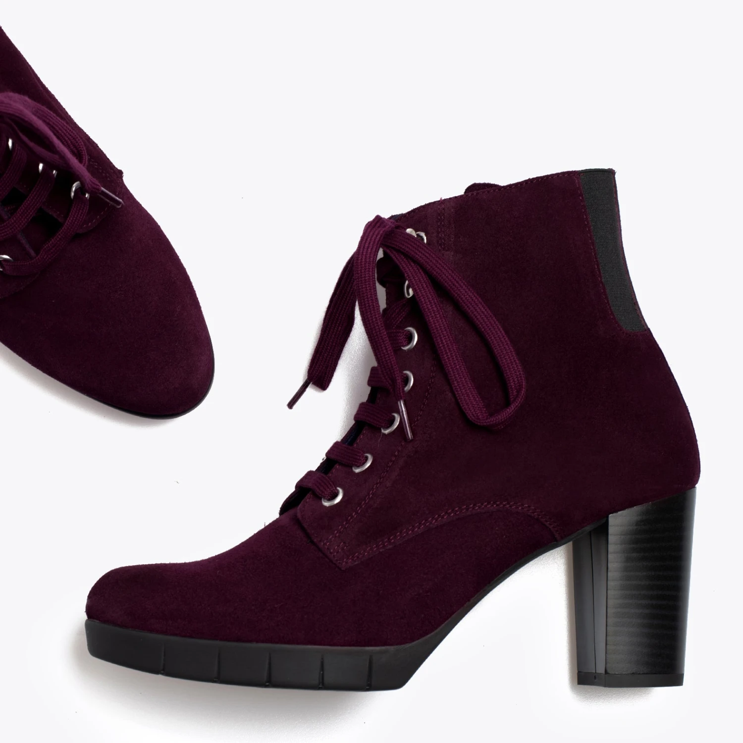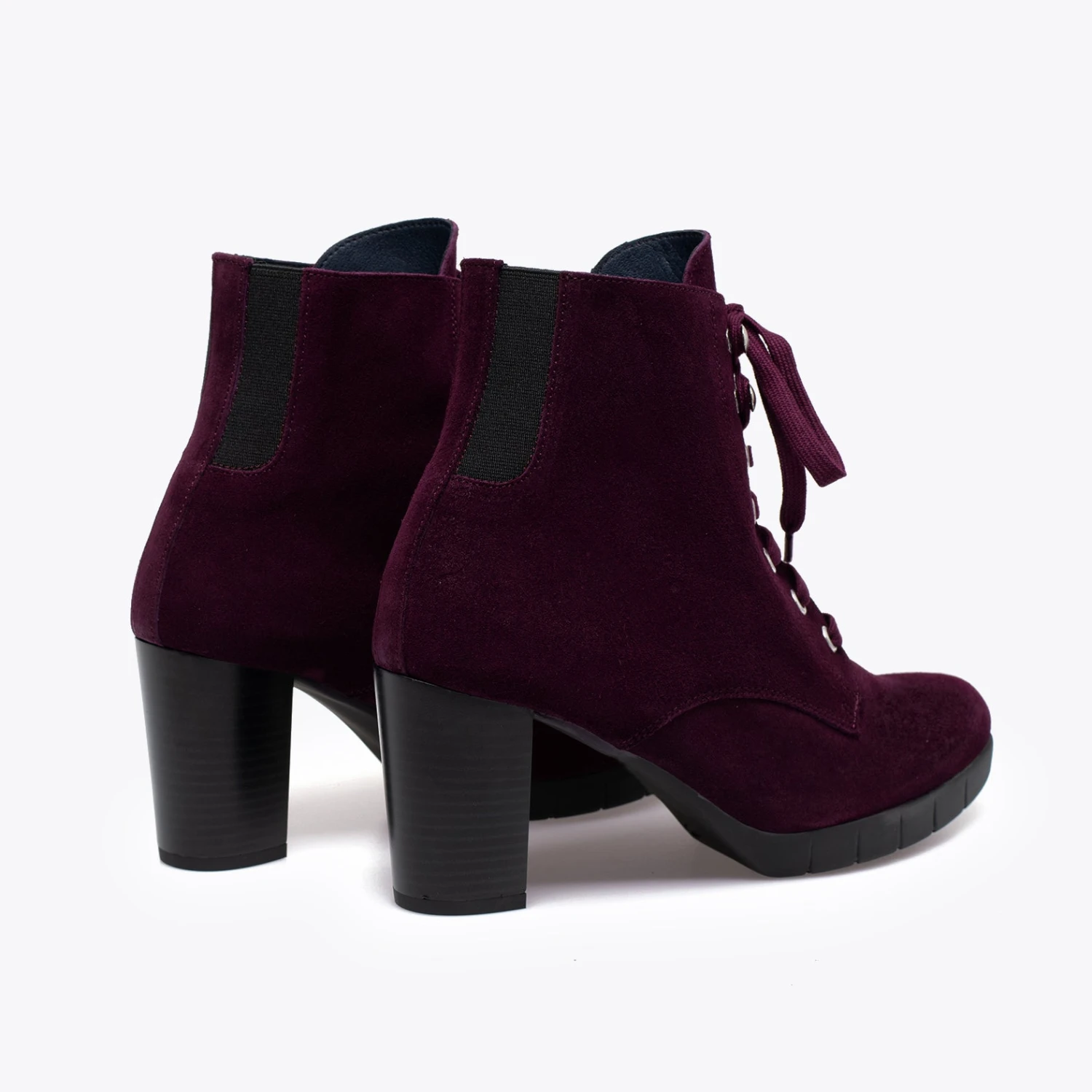 Botte pour femme BORDEAUX Ă lacets couleur cuir, avec talon de 7,5 cm et plateforme Ă l’avant de 2 cm et Ă©lastiques Ă l’arrière. Botte Ă talon confortable BORDEAUX en croĂ»te de cuir avec semelle intĂ©rieure en confort gel en cuir et semelle extĂ©rieure antidĂ©rapante.