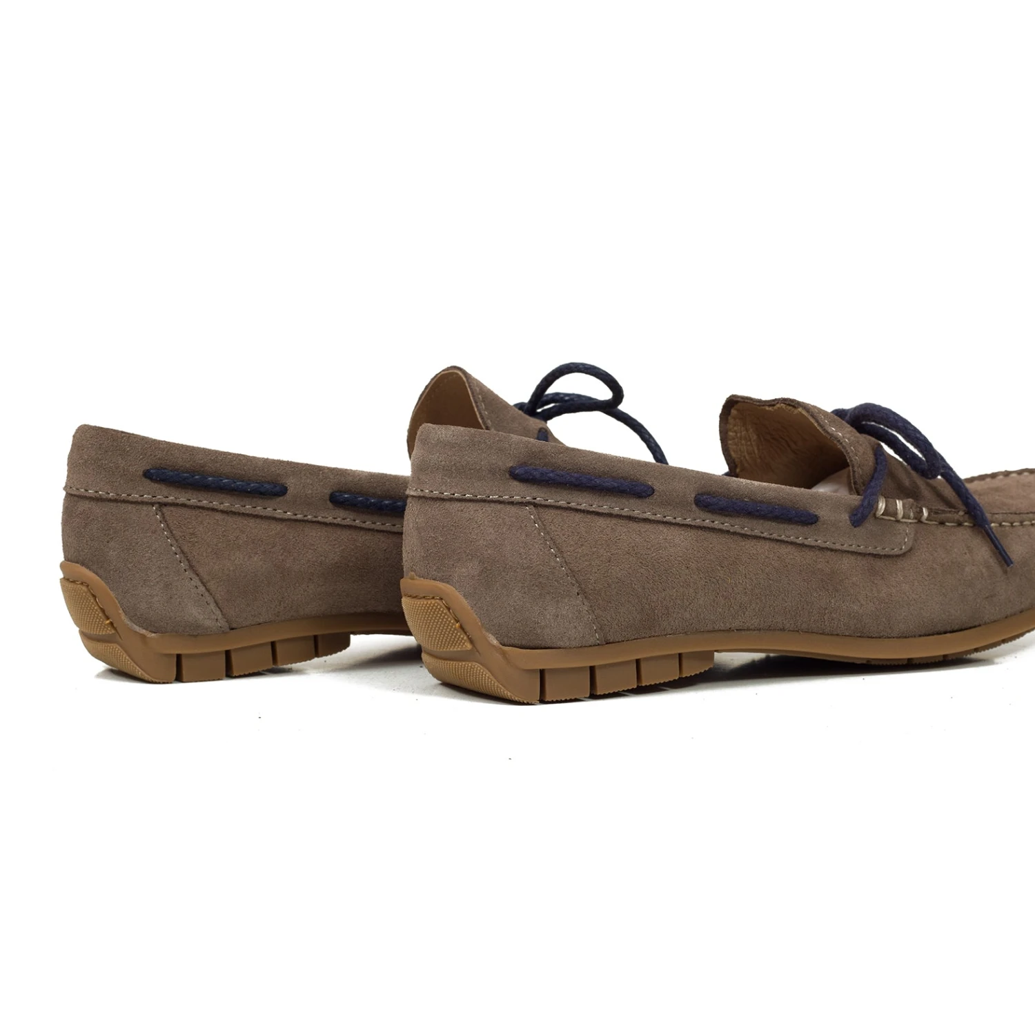 MOCASSIN POUR HOMME COULEUR GRIS AVEC LACETS BLEU MARINE ET DÉCORATION. CHAUSSURES EN CUIR NUBUCK GRIS CONFORTABLES POUR HOMME AVEC SEMELLE INTÉRIEURE EN CUIR MEMORY ABSORBER FOAM ET SEMELLE EXTÉRIEURE EN CAOUTCHOUC MARRON. ESSAYEZ LA QUALITÉ DE CETTE CHAUSSURE EN CUIR FABRIQUÉE EN ESPAGNE. ACHETEZ VOS CHAUSSURES EN LIGNE CONFORTABLES ET COMBINEZ MODE ET CONFORT.