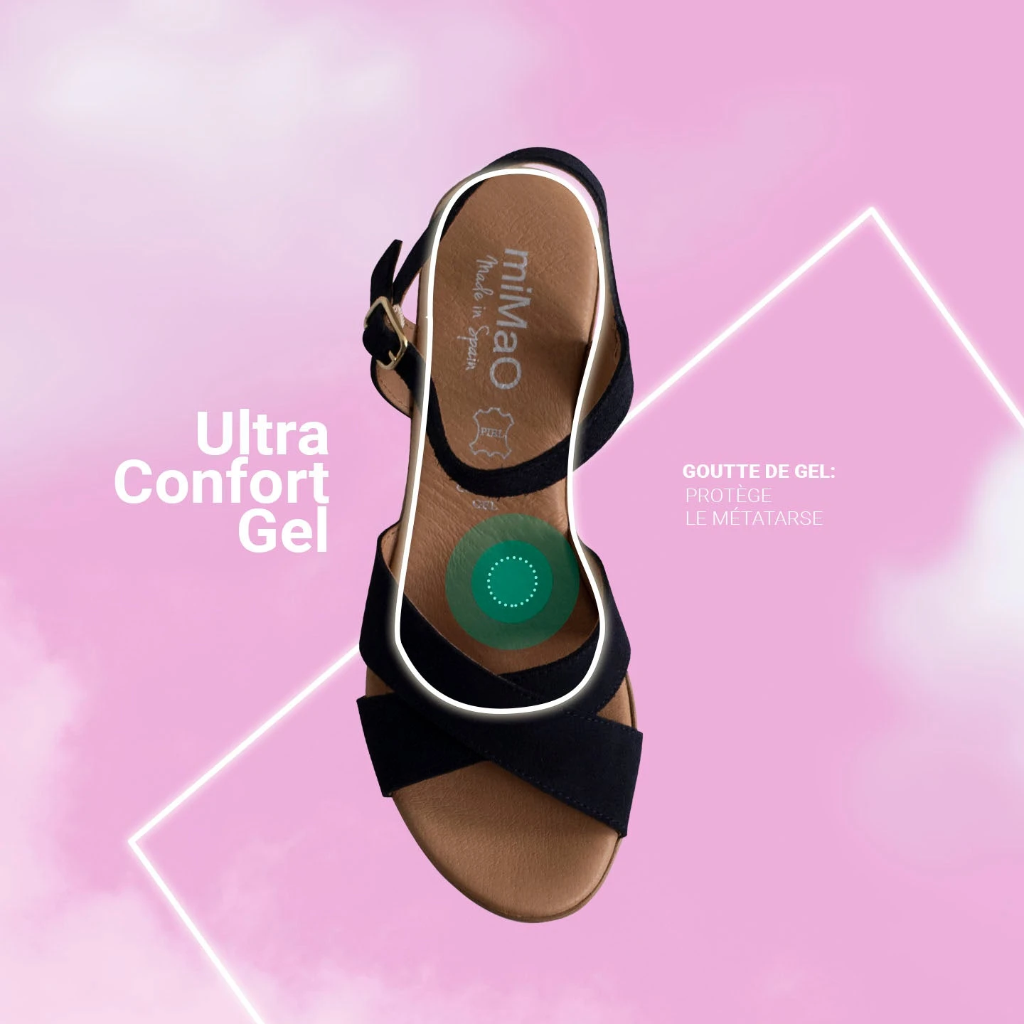 Technologie de Confort: semelle en cuir respirante Ultra Confort Gel