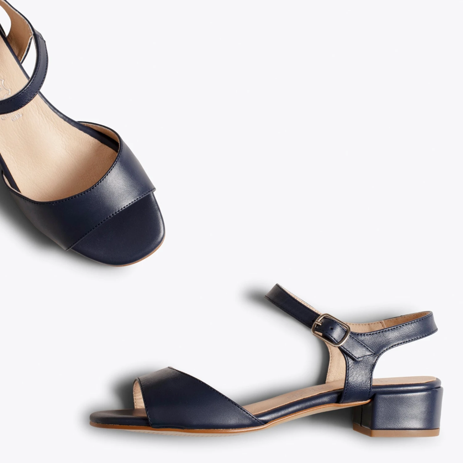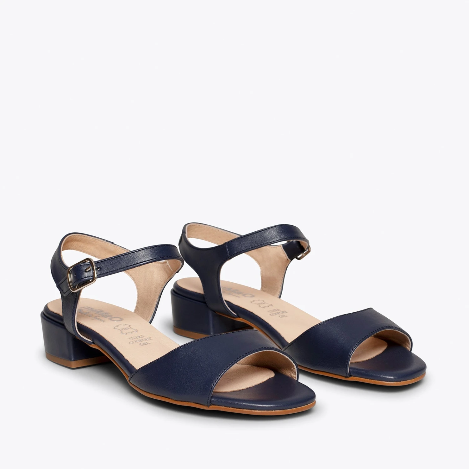 Sandales BLEU MARINE en cuir nappa avec bracelet cheville et talon bas. Sandales basses confortables idĂ©ales pour un usage quotidien ou comme sandales habillĂ©es. Des sandales avec un talon de 3,5 cm, confortables, puisque ces sandales pour femme ont une semelle intĂ©rieure en cuir Goutte Ultra Confort Gel incorporĂ©e, et vous n’aurez pas l’impression de les porter! De plus, elle vous apportera le soutien dont vous avez besoin avec le bracelet cheville. Ces sandales BLEU MARINE sont disponibles dans votre magasin en ligne chaussures miMaO. Profitez des chaussures pour femme Made in Spain.