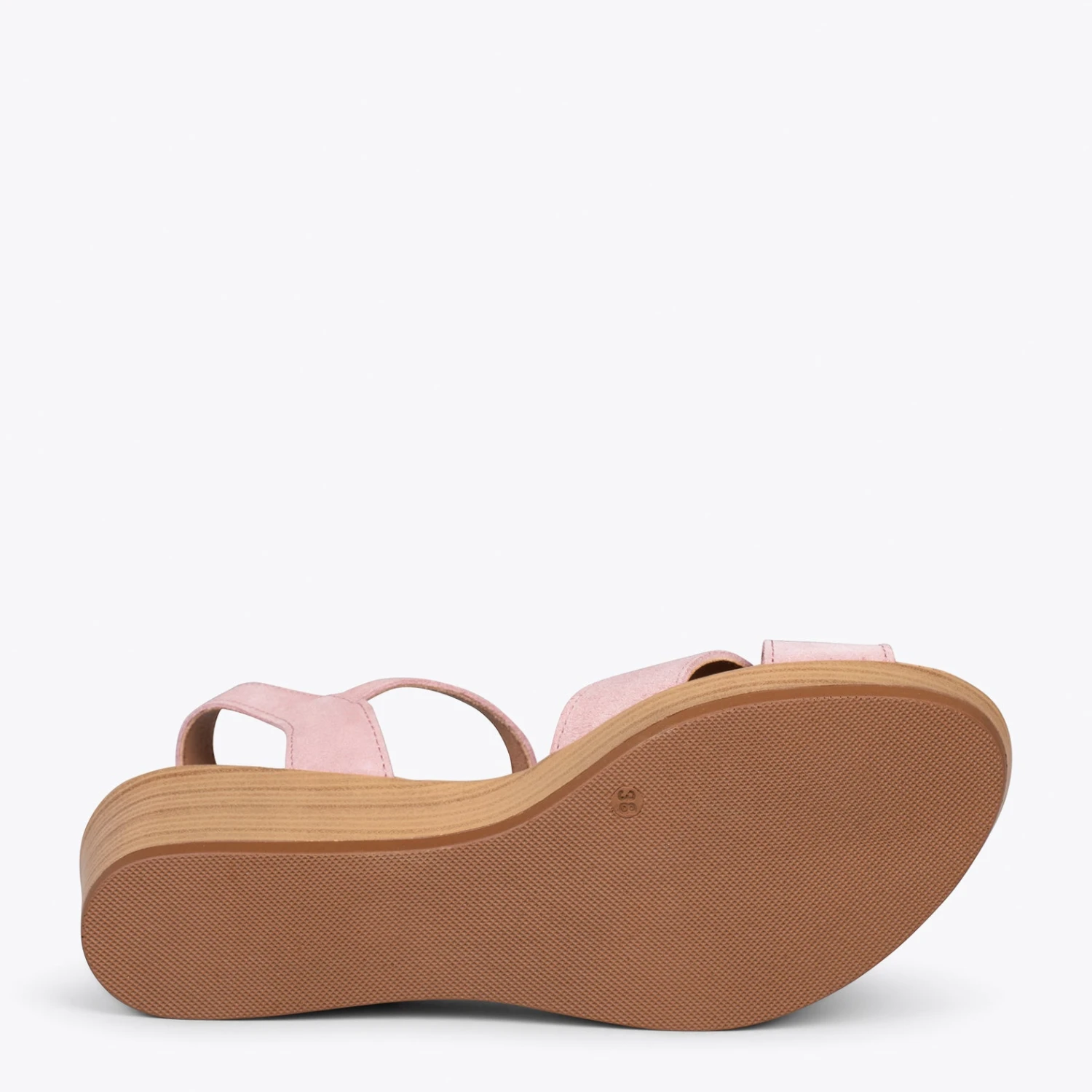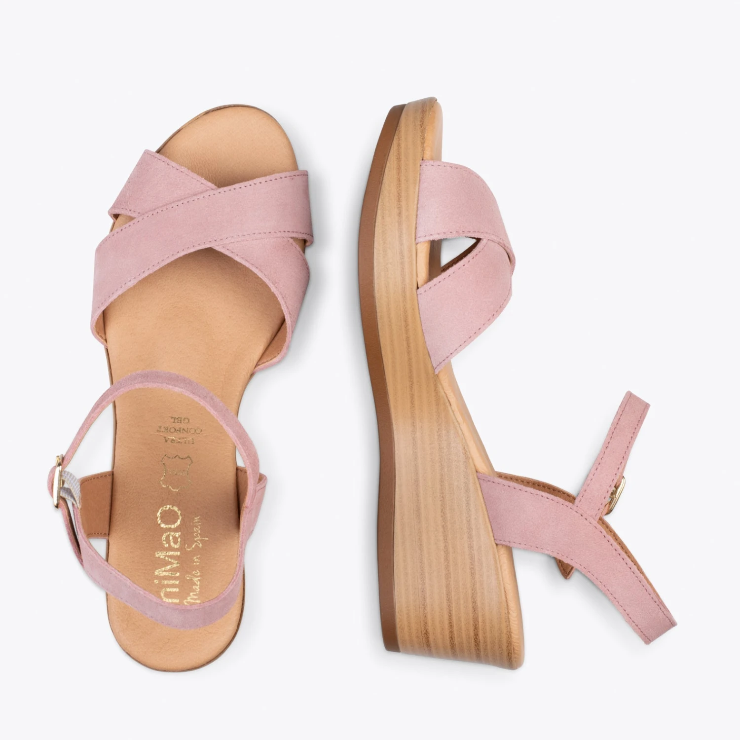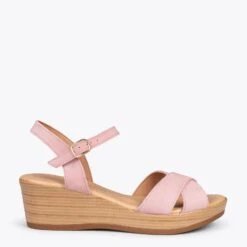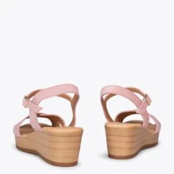 Le compensé est très léger, avec un design en imitation bois, pour nous permettre de gagner des cm sans souffrir la hauteur d’un talon élevé.