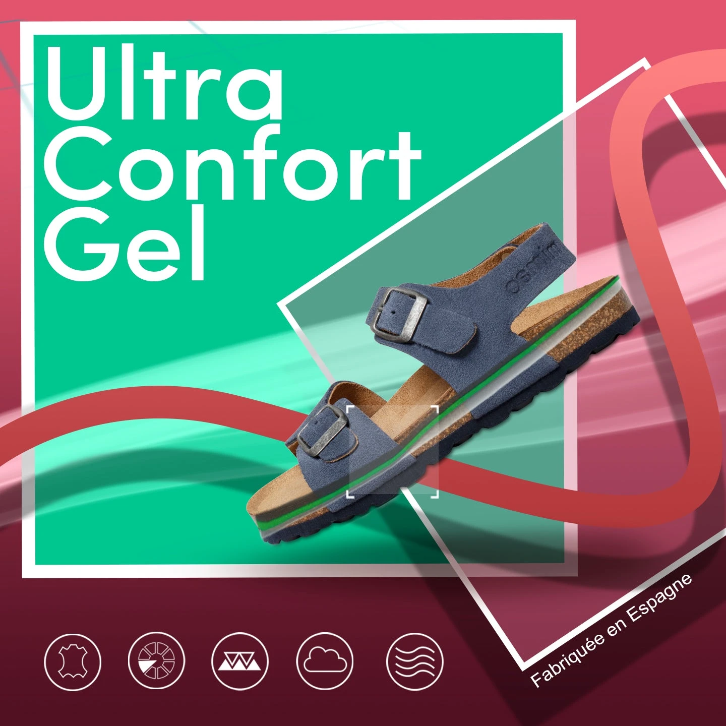 Technologie du confort: semelle intérieure en cuir Ultra Confort Gel