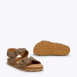 Sandales garçon Bio en cuir Nubuck TAUPE. Ces sandales pour enfant ont deux sangles qui garantissent un maintien parfait au pied. De plus, cette sandale pour garçon possède une semelle intĂ©rieure en cuir Ultra Confort Gel qui s’adaptera parfaitement Ă son pied.