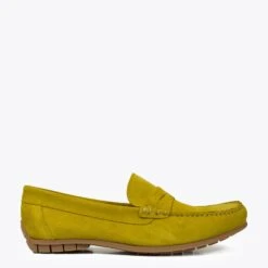 CHAUSSURES POUR HOMME DE COULEUR JAUNE AVEC LANGUETTE DÉCORATIVE ARRONDIE. DES MOCASSINS CONFORTABLES EN JAUNE 100%CUIR NUBUCK AVEC SEMELLE INTÉRIEURE EN CUIR MEMORY ABSORBER FOAM ET SEMELLE EXTÉRIEURE EN CAOUTCHOUC MARRON. PROFITEZ DE LA QUALITÉ DE CES CHAUSSURES FABRIQUÉES EN ESPAGNE.COMMANDEZ VOS CHAUSSURES POUR HOMME ONLINE ET  RECEVEZ-LES SOUS 2 À 4 JOURS