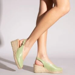 Espadrilles compensées VERT, indispensable dans votre garde-robe. Cette espadrille a un design peep toe avec un bout ouvert en forme de V. C’est une chaussure en cuir nappa qui intègre la semelle intérieure en cuir Goutte Ultra Confort Gel, qui sera votre espadrille la plus confortables ce printemps-été 2021. En plus grâce à son encolure en V et qu’il s’agit d’une espadrille avec une fermeture à boucle, votre pied aura l’air plus stylisé.