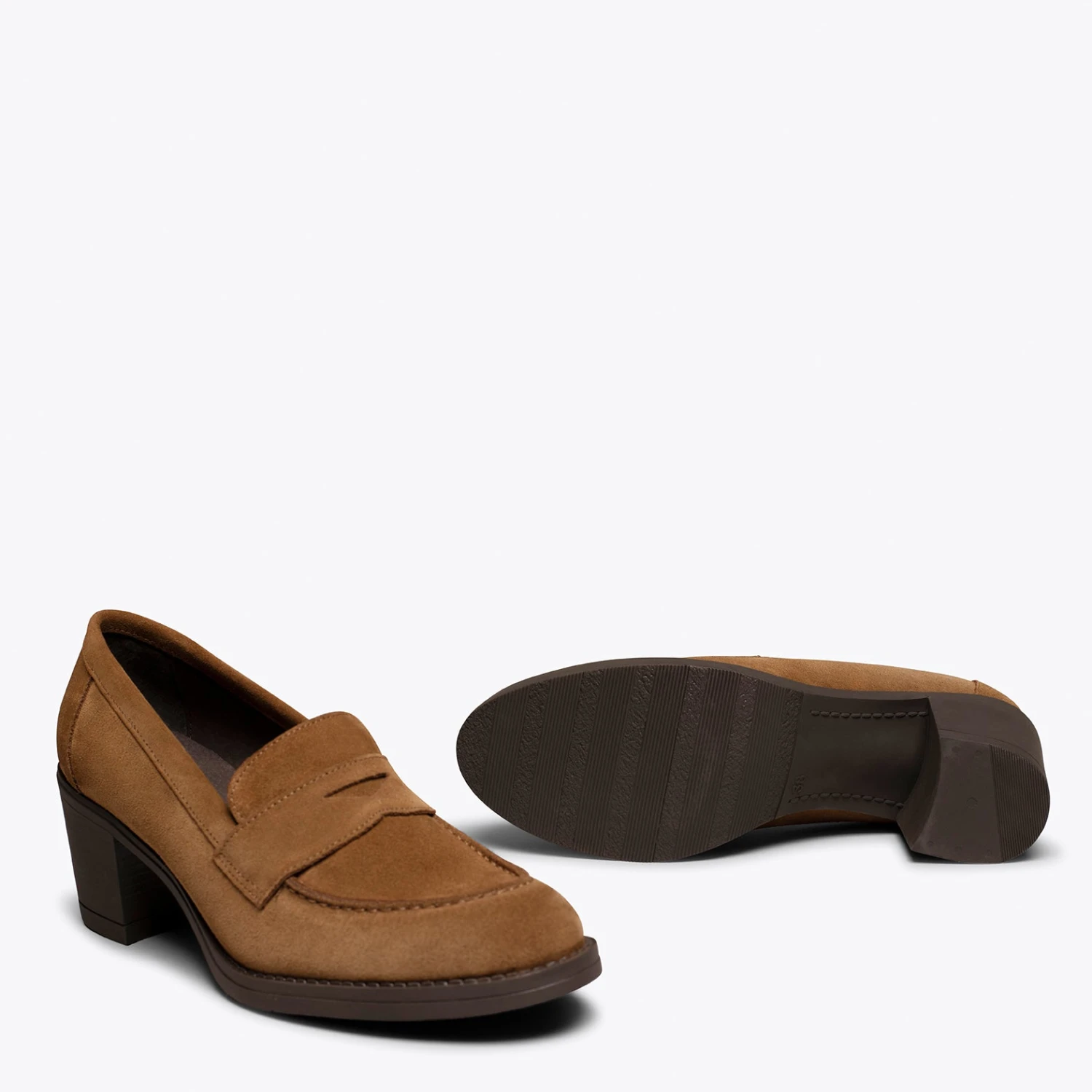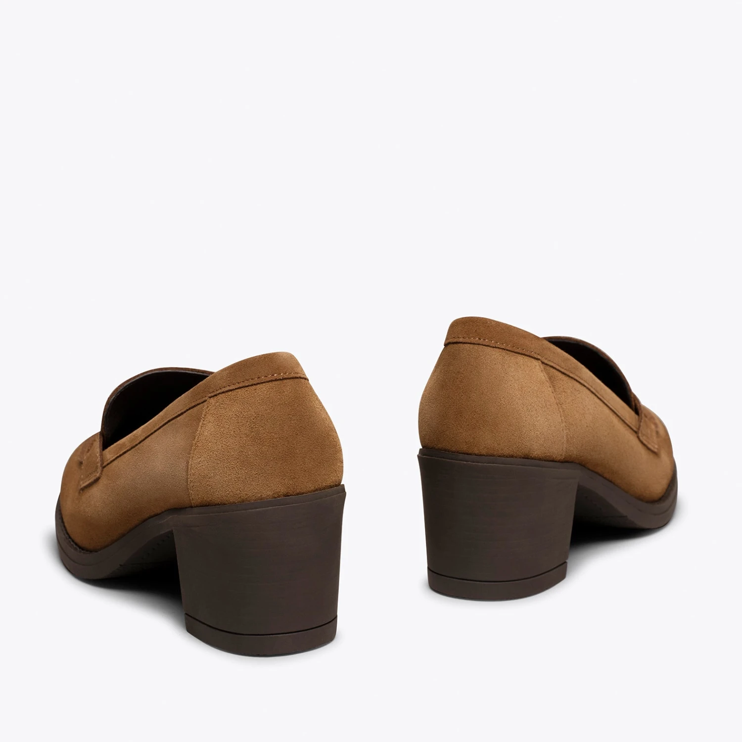 Lequel prĂ©fĂ©rez-vous? Une chaussure Ă talon haut ou un mocassin? Nous, on aime tous les deux! Profitez de chaussures classiques pour femme, qui se combinent avec tout, mais avec le petit « plus » du talon de 6 cm. Un mocassin CAMEL pour une femme moderne! Elle deviendra votre chaussure en cuir prĂ©fĂ©rĂ©e cette saison, vous la porterez Ă toute heure et vous n’aurez mĂȘme plus envie de les enlever en rentrant Ă la maison. Combinez-les avec un jean pour une occasion plus dĂ©contractĂ©e, ou avec une robe un peu plus habillĂ©e pour un look plus Ă©lĂ©gant. Le talon fera la diffĂ©rence!    Â