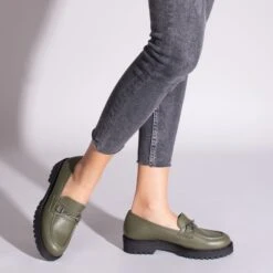 Mocassins en cuir nappa KHAKI pour femmes