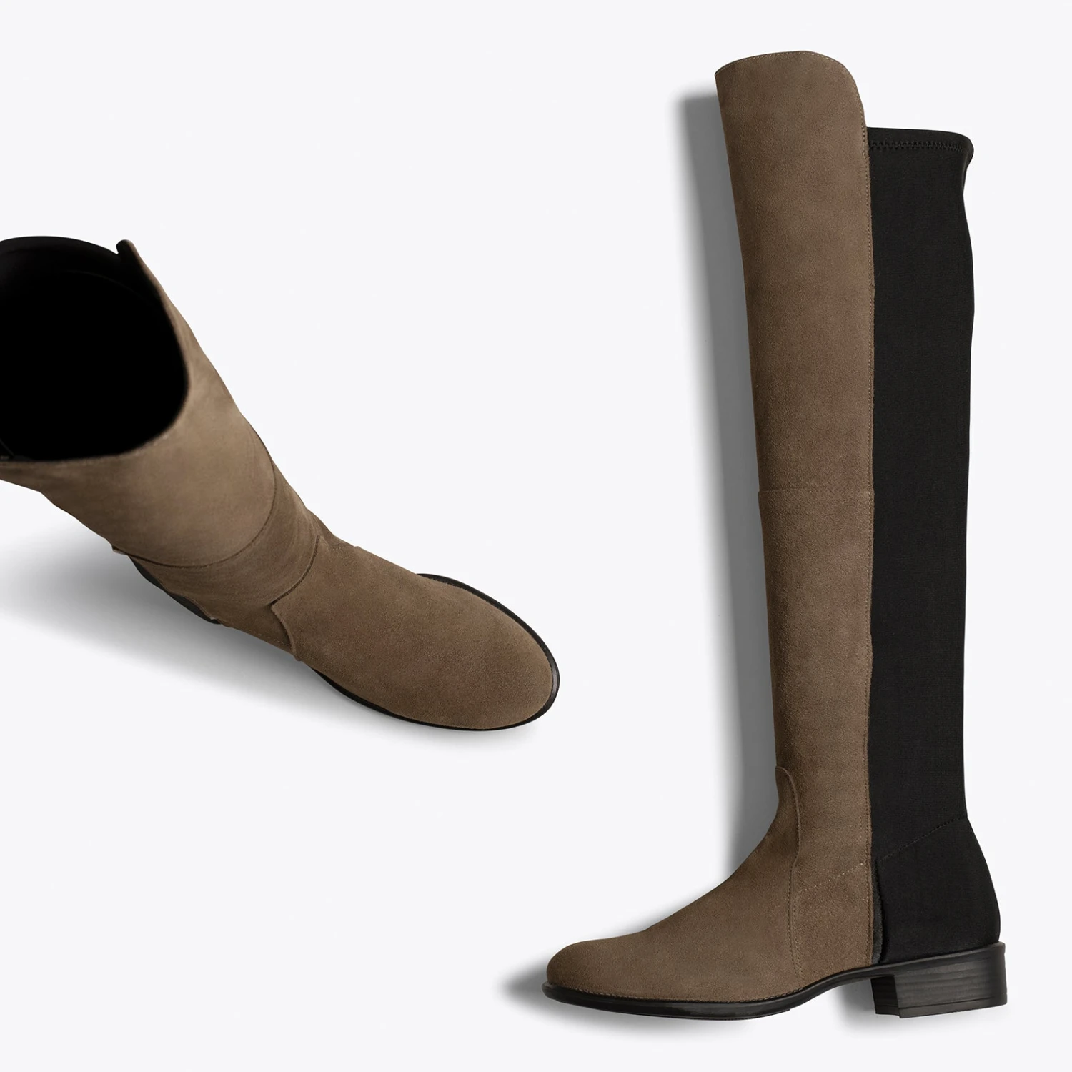 Les cuissardes sont nos meilleurs alliĂ©es si nous voulons styliser nos jambes et paraĂ®tre plus grandes. C’est une botte en cuir TAUPE qui vous accompagnera pendant de nombreux hivers, car elle se combine avec tout et sera extrĂŞmement confortable grâce Ă sa semelle intĂ©rieure en gel ultra-confort et son mini talon de 3 cm. Vous ne voudrez certainement plus enlever ces bottes TAUPE de vos pieds! De plus , grâce Ă l’Ă©lastique Ă l’arrière, elles s’adapteront parfaitement Ă toutes les largeurs de mollets ! Voulez-vous aussi vous sentir comme un vrai mousquetaire? Ces bottes hautes iront mieux avec une robe courte ou une jupe Ă©vasĂ©e, laissant voir une petite jambe entre la chaussure et la jupe. Ou si vous aimez les pantalons, un skinny Ă l’intĂ©rieur de cette botte sera du plus bel effet .