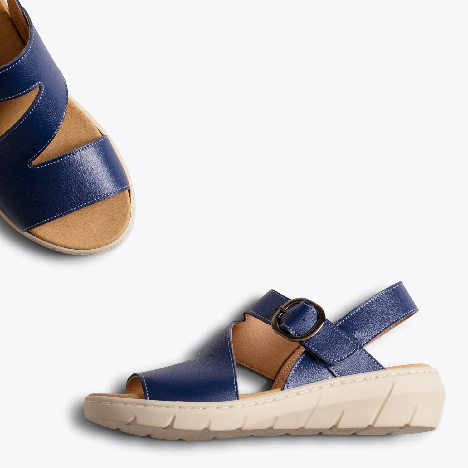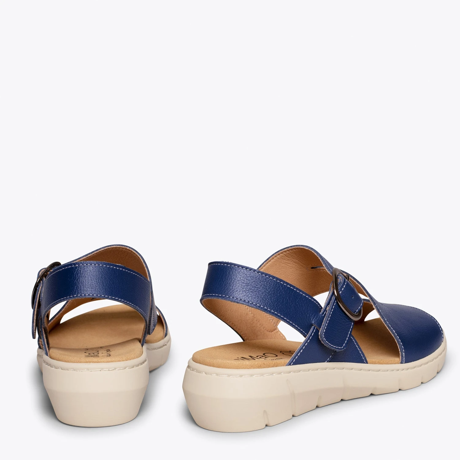 Ces sandales BLEU Ă semelle compensĂ©e et plateforme se ferme avec une boucle, ce qui vous permet de l’ajuster confortablement Ă votre pied et ses brides en forme de Z le maintiendra bien en place. Il s’agit Ă©galement d’une sandale fraĂ®che parfaite pour cette saison printemps-Ă©tĂ© 2022.