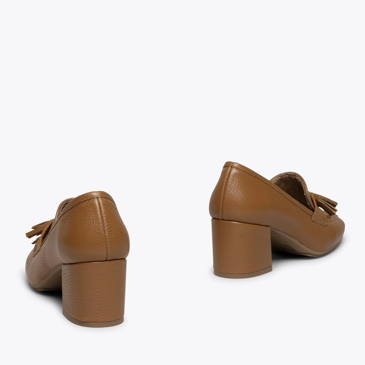 C’est la chaussure CAMEL parfaite pour celles qui aiment les mocassins et les talons. La combinaison parfaite pour un modèle confortable, sophistiquĂ© et idĂ©al pour tous les jours. Que ce soit pour aller travailler ou vous promener dans votre ville prĂ©fĂ©rĂ©e, vous ne voudrez plus vous sĂ©parer de cette chaussure pour femme. Et si vous n’ĂŞtes toujours pas convaincue, regardez le pompon qu’il a sur le dessus et admirez la forme originale de son talon. Vous ĂŞtes sĂ©duite?