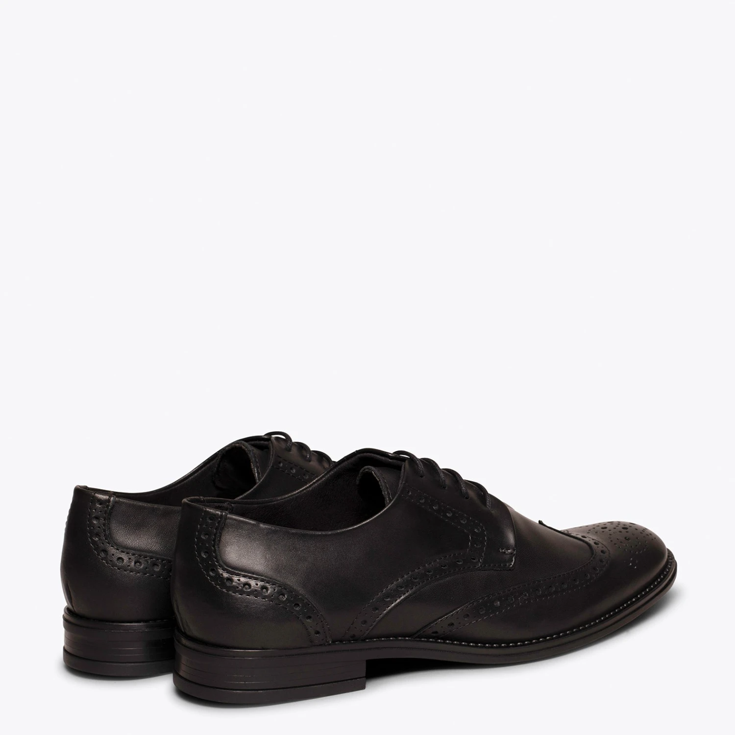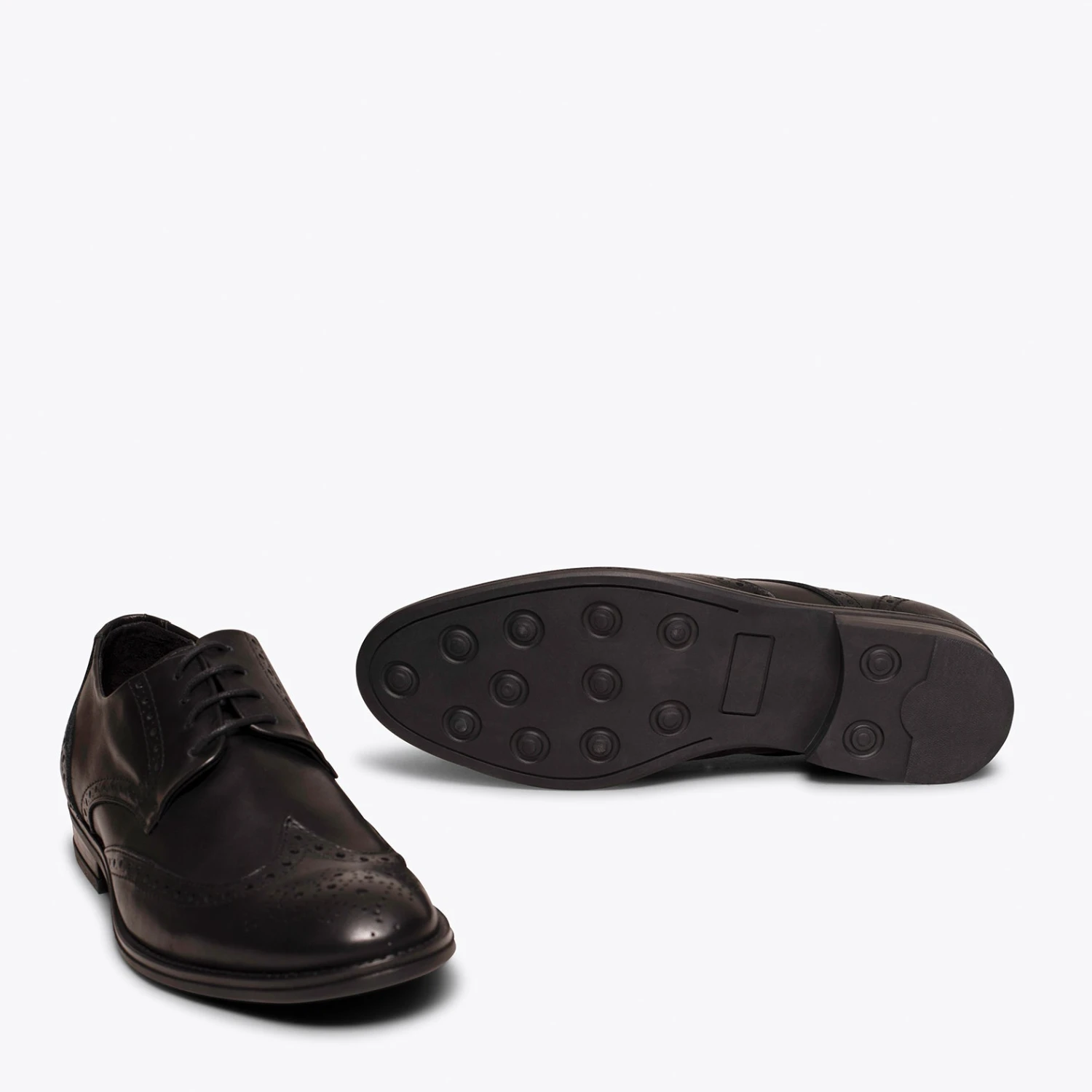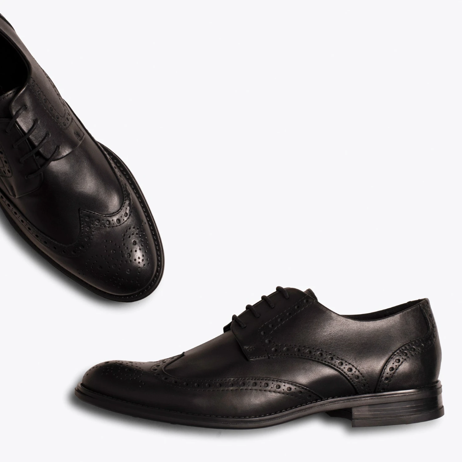 DĂ©couvrez cette chaussure homme NOIR Ă©lĂ©gante et extrĂŞmement confortable. Avec la technologie de confort de la semelle intĂ©rieure memory absorber foam, vous aurez la sensation de porter des chaussures sur mesure et vous pourrez marcher pendant des heures. Grâce Ă la coupe anglaise, elles deviendront les chaussures les plus originales de votre armoire Ă chaussures. Sentez-vous comme un « Lord » avec ces chaussures en cuir pour homme. Vous pouvez les combiner avec un jean pour lui donner une touche plus dĂ©contractĂ©e ou avec un costume Ă©lĂ©gant. Dans tous les cas, vous serez toujours tendance avec votre outfit.                                                                Â