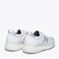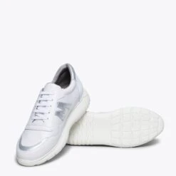 La semelle extérieure de cette chaussure BLANC/ ARGENTÉ a un léger talon compensé: elle mesure 2 cm de hauteur à l’avant et 4 cm à l’arrière. Soyez à la mode avec ces baskets BLANC/ ARGENTÉ cette saison printemps été 2020. De plus, la partie arrière en cuir nappa couleur ARGENT, le bout ARGENTÉ et le M ARGENTÉ, vous pouvez les combiner avec beaucoup de vos tenues préférées. Marchez confortablement et faites tendance tout en prenant soin de de vos pieds!