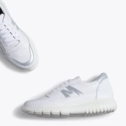 Baskets pour homme BLANC et ARGENTÉ avec lettre M décorative en cuir nubuck de couleur ARGENT des deux côtés. Grâce à leurs lacets, vous pouvez parfaitement ajuster ces baskets à votre pied. Ces baskets BLANC/ ARGENTÉ avec semelle en caoutchouc antidérapant blanche intègre une semelle intérieure avec technologie de confort Memory Absorber Foam. Cette semelle intérieure amovible prendra la forme de votre pied après quelques utilisations, elle aura donc les mêmes avantages qu’une semelle intérieure sur mesure. Cette chaussure BLANC/ ARGENTÉ est fabriquée en cuir nubuck / nappa en Espagne.