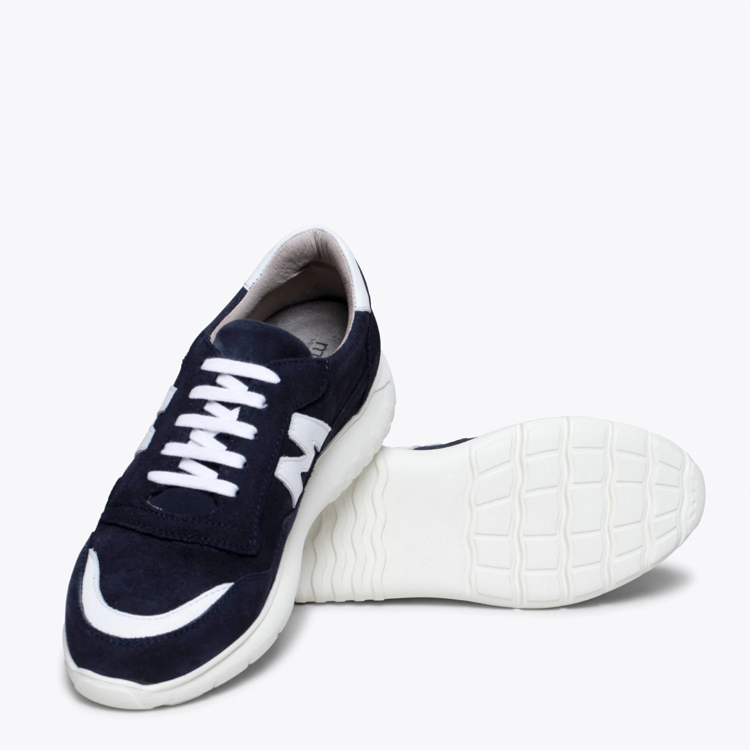 Baskets pour homme BLEU et BLANC avec lettre M dĂ©corative en cuir de couleur BLANC des deux cĂ´tĂ©s. Grâce Ă leurs lacets, vous pouvez parfaitement ajuster ces baskets Ă votre pied. Ces baskets BLEU/BLANC avec semelle en caoutchouc antidĂ©rapant blanche intègre une semelle intĂ©rieure avec technologie de confort Memory Absorber Foam. Cette semelle intĂ©rieure amovible prendra la forme de votre pied après quelques utilisations, elle aura donc les mĂŞmes avantages qu’une semelle intĂ©rieure sur mesure. Cette chaussure BLEU/BLANC est fabriquĂ©e en cuir nubuck en Espagne.