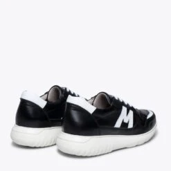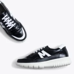 Baskets pour homme NOIR et BLANC avec lettre M dĂ©corative en cuir nappa de couleur BLANC des deux cĂ´tĂ©s. Grâce Ă leurs lacets, vous pouvez parfaitement ajuster ces baskets Ă votre pied. Ces baskets NOIR/ BLANC avec semelle en caoutchouc antidĂ©rapant blanche intègre une semelle intĂ©rieure avec technologie de confort Memory Absorber Foam. Cette semelle intĂ©rieure amovible prendra la forme de votre pied après quelques utilisations, elle aura donc les mĂŞmes avantages qu’une semelle intĂ©rieure sur mesure. Cette chaussure NOIR/ BLANC est fabriquĂ©e en cuir nappa en Espagne.