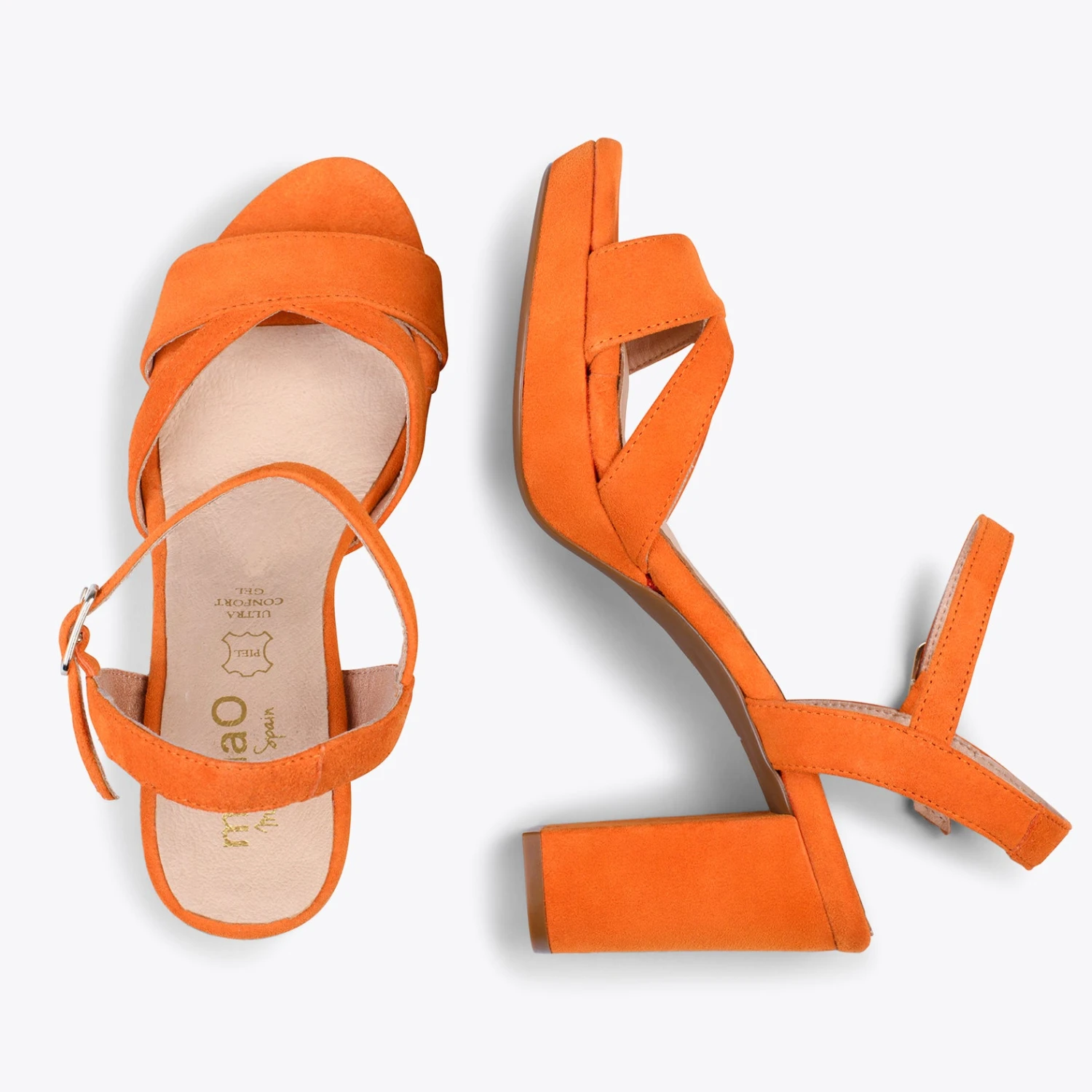 Le talon mesure 8 cm et il est très large, offrant ainsi une très bonne stabilité. Grâce à la plateforme, la hauteur du talon est compensée et le pied n’est pas trop incliné, ce qui augmente le confort. Semelle antidérapante et personnalisée miMaO.