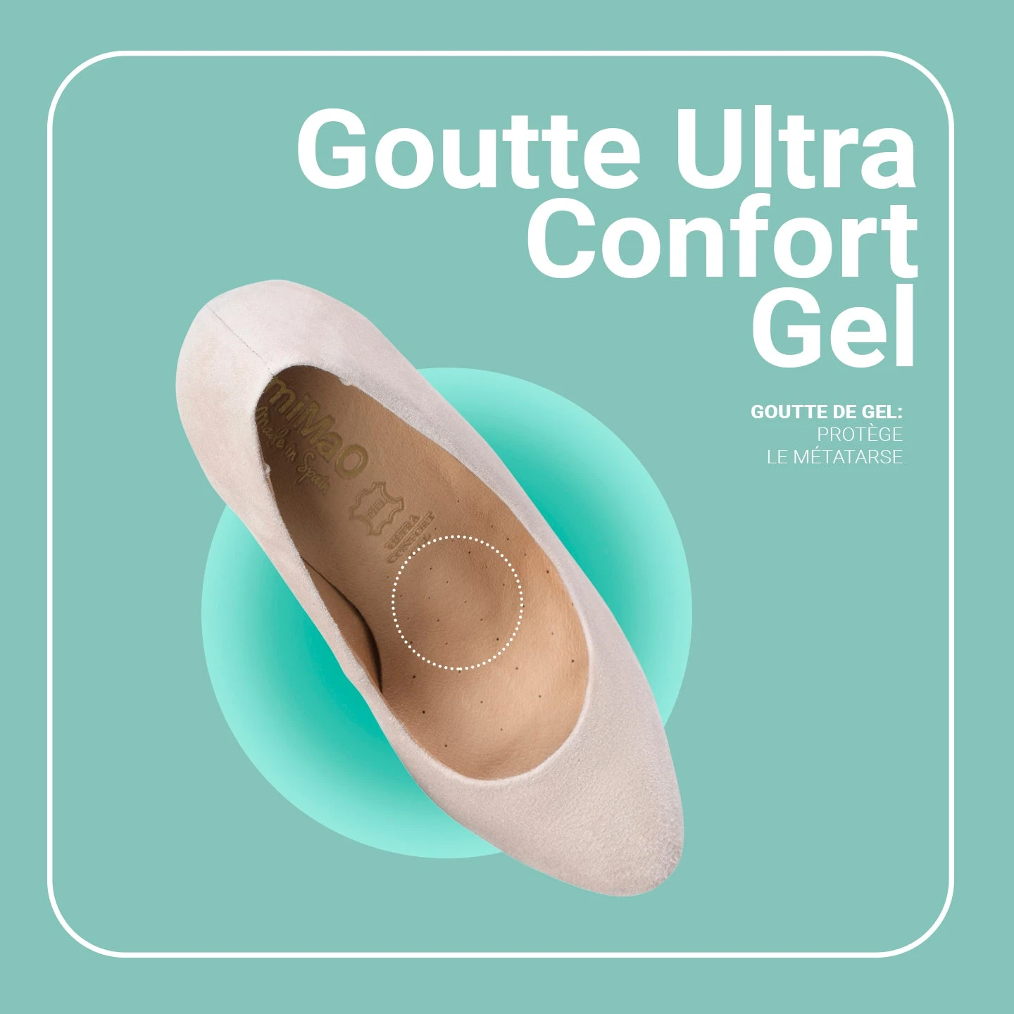 Technologie de Confort: semelle intérieure en Cuir Goutte Ultra Confort Gel, respirante