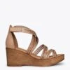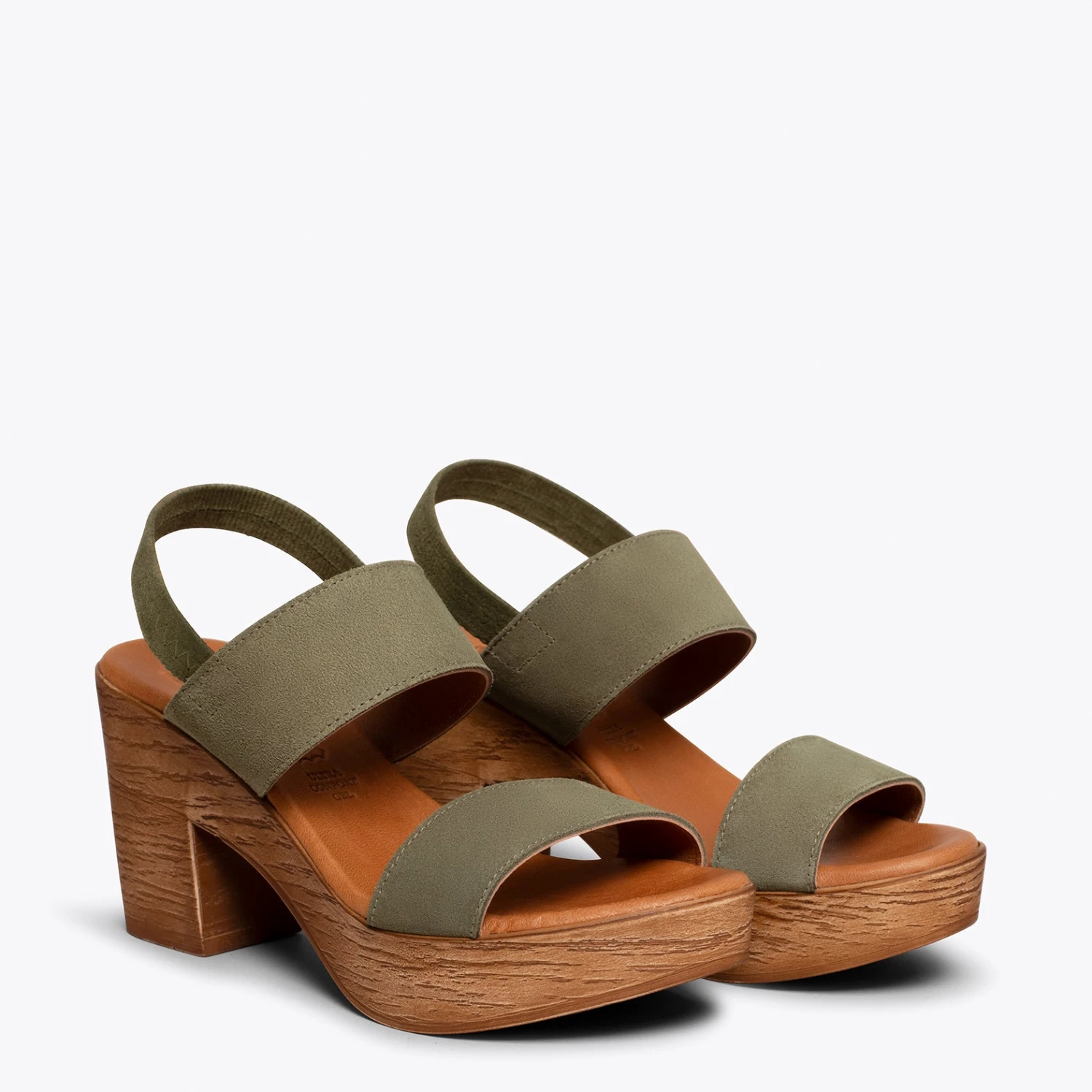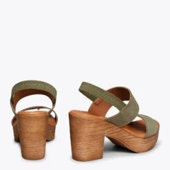 Sandales KAKI avec plateforme imitation bois. Une chaussure pour femme fabriquée en Espagne. Trouvez-les dans votre magasin de chaussures en ligne miMaO.