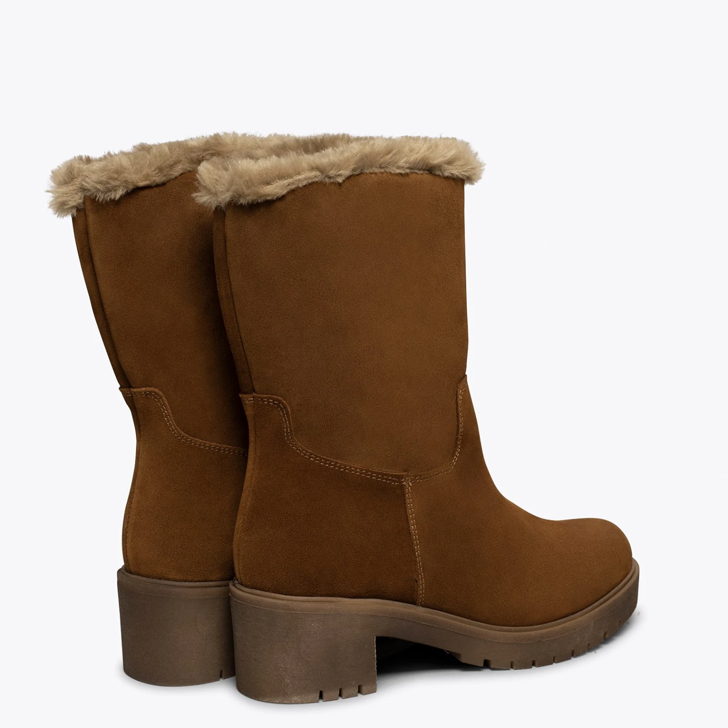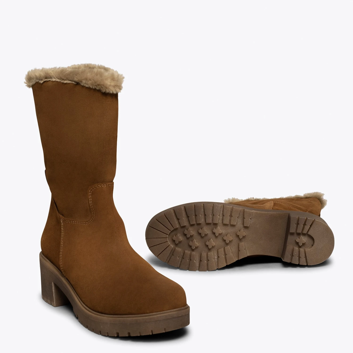 Avec cette botte vous voudrez sauter dans les flaques d’eau, n’est-ce-pas? De plus, elle vous procurera de la chaleur avec la fourrure sur le dessus. Ça sent l’hiver. Alors foncez, plongez dans l’eau, marchez sur la neige, elle gardera vos pieds au sec tout en Ă©tant protĂ©gĂ©s du froid grâce Ă son cuir hydrofuge. Cette botte CAMEL sera votre meilleure alliĂ©e lors des jours dĂ©sagrĂ©ables de cette saison. Souciez-vous uniquement de vous protĂ©ger avec un bon manteau, nous veillons Ă ce que vos pieds soient bien protĂ©gĂ©s.