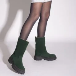 Bottes en cuir nubuck VERT avec traitement hydrofuge