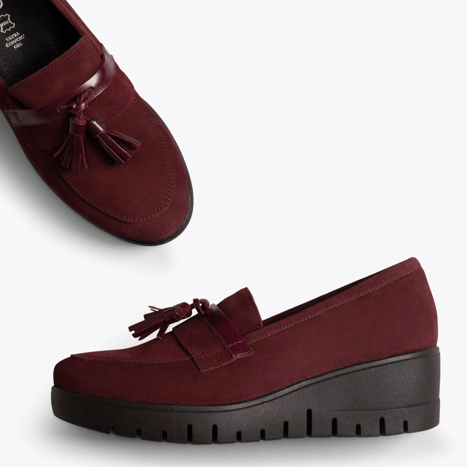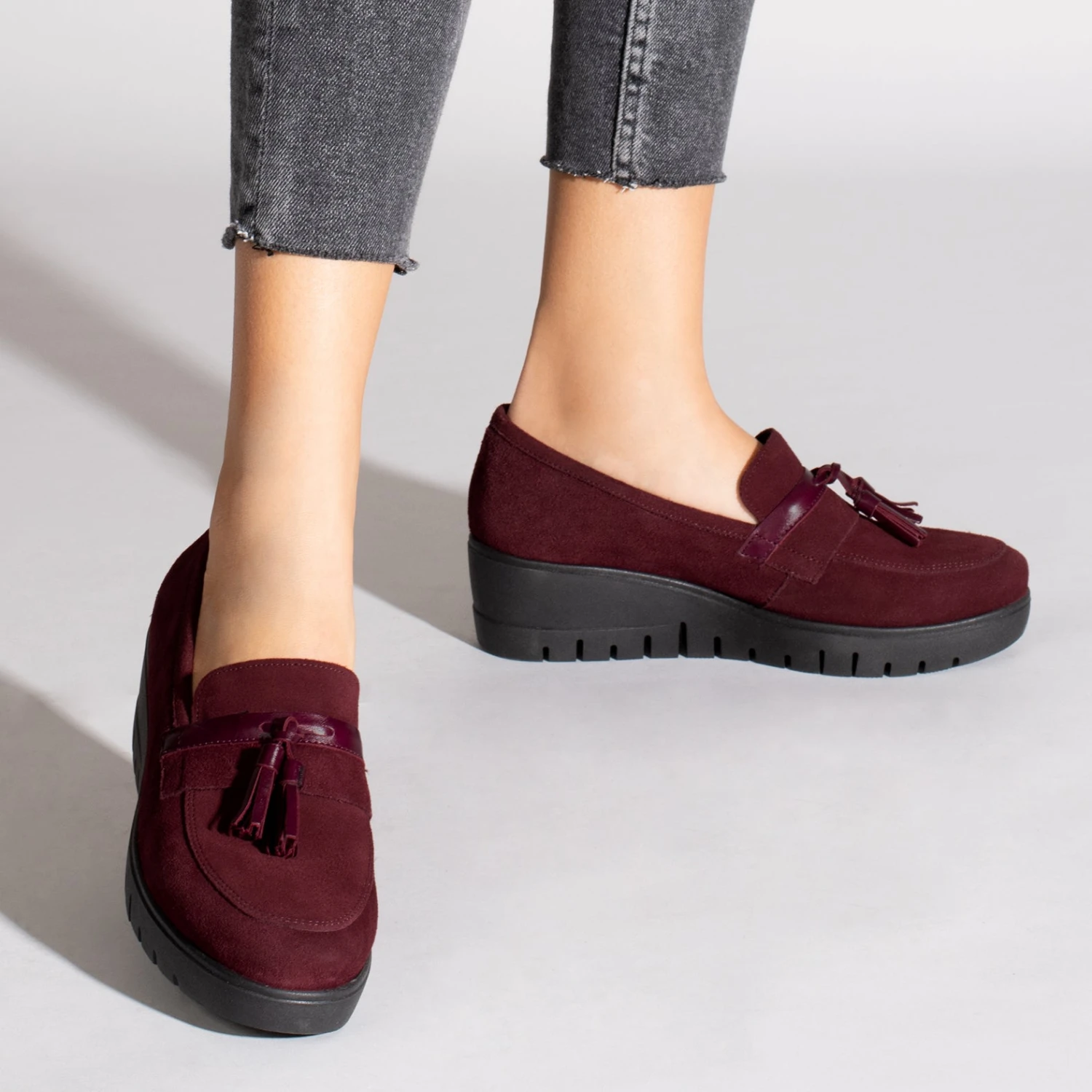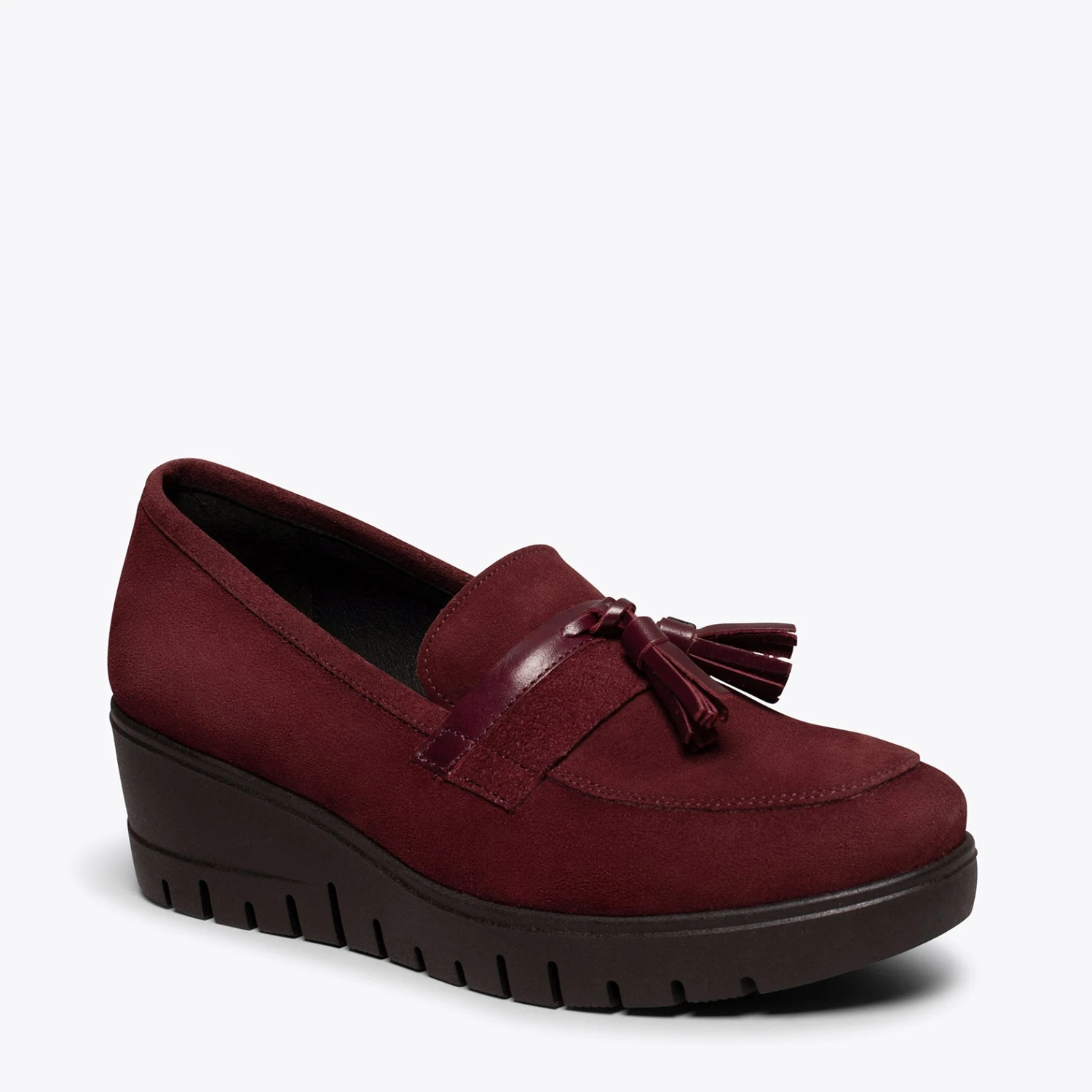 Mocassins à pompon GRENAT en cuir nubuck
