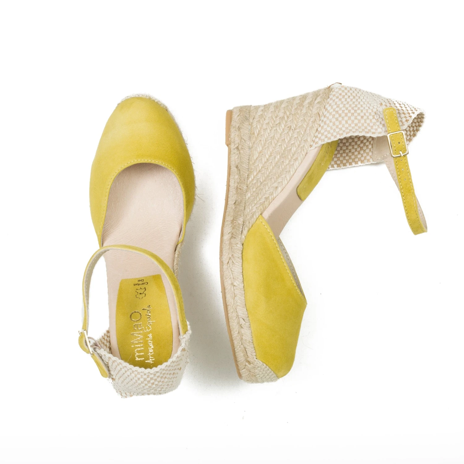 – ESPADRILLE POUR FEMME COULEUR MOUTARDE À TALON COMPENSÉ DE 8,5 CM ET PLATEFORME DE 1,5 CM, AVEC FERMETURE À BRACELET AVEC BOUCLE, ZONE DU TALON EN TOILE ET BOUT ARRONDI. SEMELLE COMPENSÉE CONFORTABLE MOUTARDE EN CUIR AVEC SEMELLE INTÉRIEURE CONFORT GEL ET SEMELLE EXTÉRIEURE EN CAOUTCHOUC ANTIDÉRAPANT. PROFITEZ DE LA QUALITÉ DE CES CHAUSSURES FABRIQUÉES EN ESPAGNE. COMMANDEZ VOS CHAUSSURES CONFORTABLES ONLINE ET RECEVEZ-LES SOUS 2 À 4 JOURS OUVRABLES.