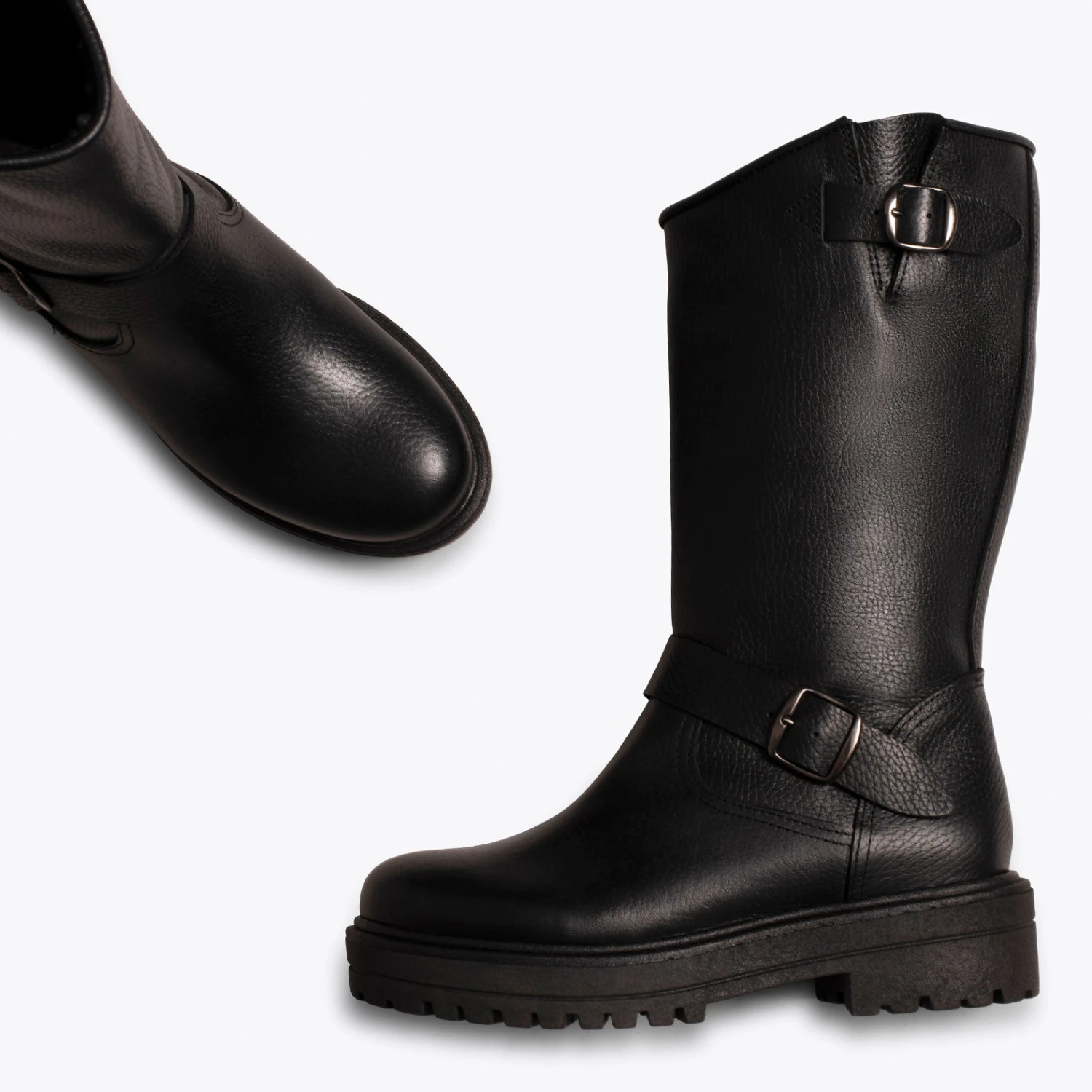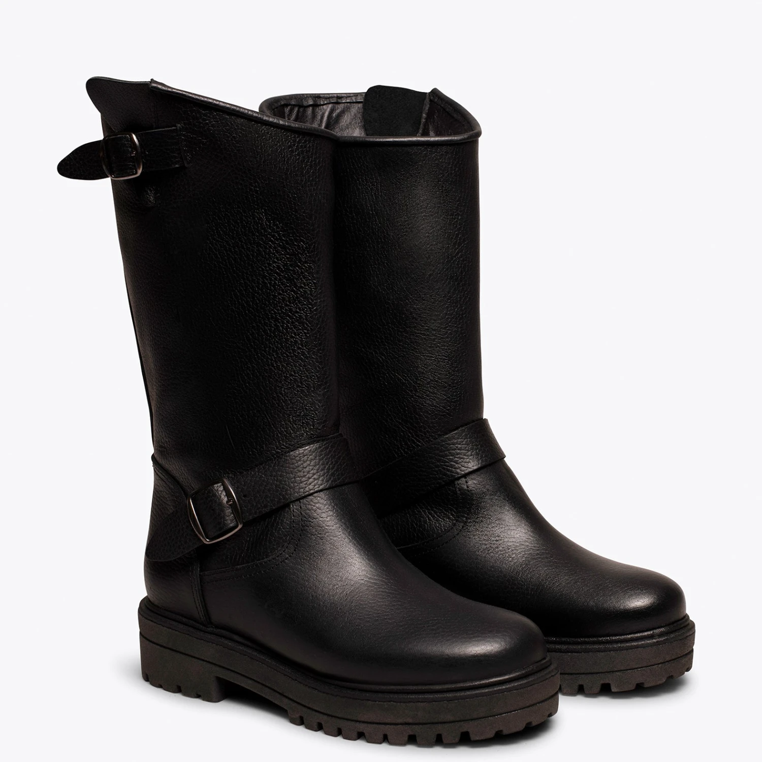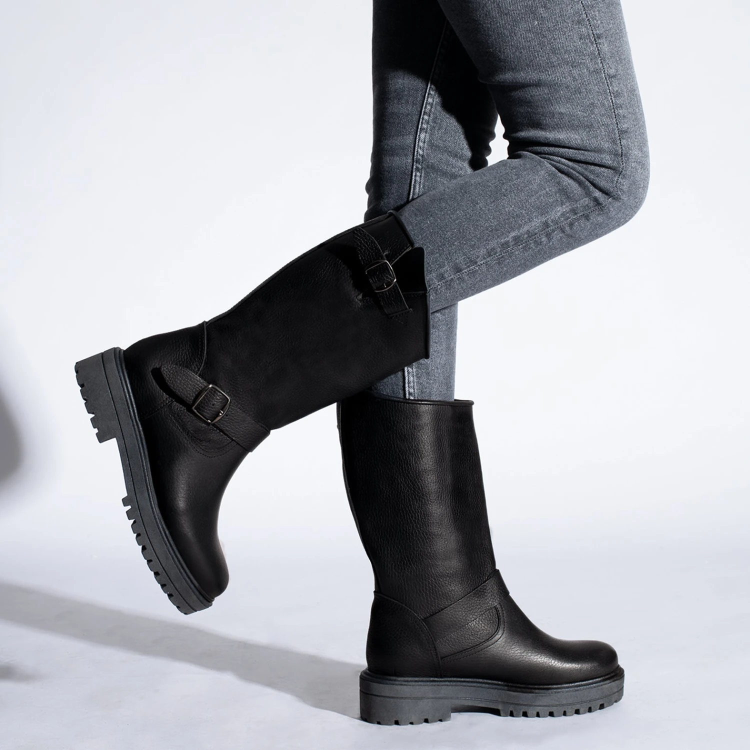 Si vous cherchez une botte haute pour cet automne hiver, cette botte en cuir NOIR NAPPA peut ĂŞtre une excellente option. C’est une botte Ă talon, mais grâce Ă sa plateforme avant, la sensation sera comme une botte plate, elle sera donc idĂ©ale pour celles qui veulent un peu plus de hauteur, mais qui ne sont pas des habituĂ©s aux talons. Ses deux boucles apporteront Ă©galement une touche originale et faciliteront l’ajustement de la chaussure. Profitez de ces bottes en cuir pour vous protĂ©ger du froid, combinez-les Ă un jean serrĂ© Ă l’intĂ©rieur de la botte pour ĂŞtre au chaud et magnifique. Et, si vous ĂŞtes plutĂ´t jupes et robes, elles seront Ă©galement idĂ©ales avec une robe courte qui montre la jambe entre le vĂŞtement et les chaussures. Vos jambes paraĂ®tront très longues!                   Â
