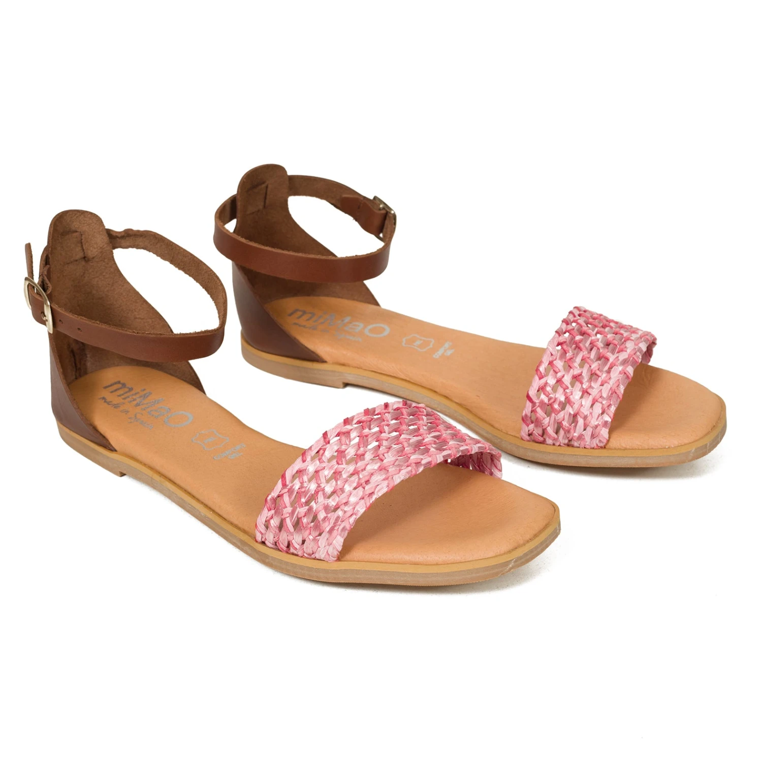 SANDALE PLATE ROSE POUR FEMME AVEC BRIDE A L’ AVANT EN RAPHIA, PARTIE ARRIÈRE DU TALON EN CUIR , FERMETURE BRACELET AVEC BOUCLE ET BOUT CARRÉ. SANDALES CONFORTABLES ROSE EN CUIR ET RAPHIA AVEC SEMELLE INTÉRIEURE CONFORT GEL EN CUIR. ESSAYEZ LA QUALITÉ DES CHAUSSURES FABRIQUÉES EN ESPAGNE. ACHETEZ VOS SANDALES ET RECEVEZ-LES SOUS 2 A 4 JOURS OUVRABLES.