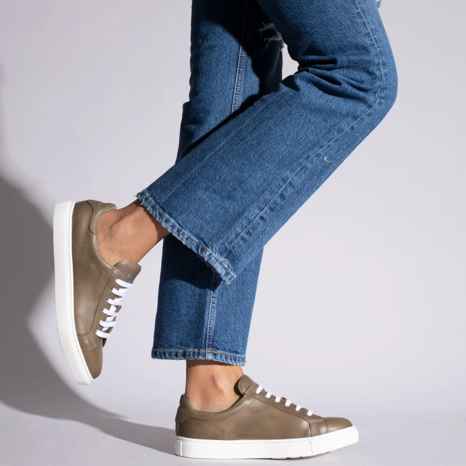 Combinez vos sneakers tennis CAFÉ avec un jeans ou un t-shirt blanc, une blouse ou un blazer. Chaussure de sport avec une plateforme de 3 cm.