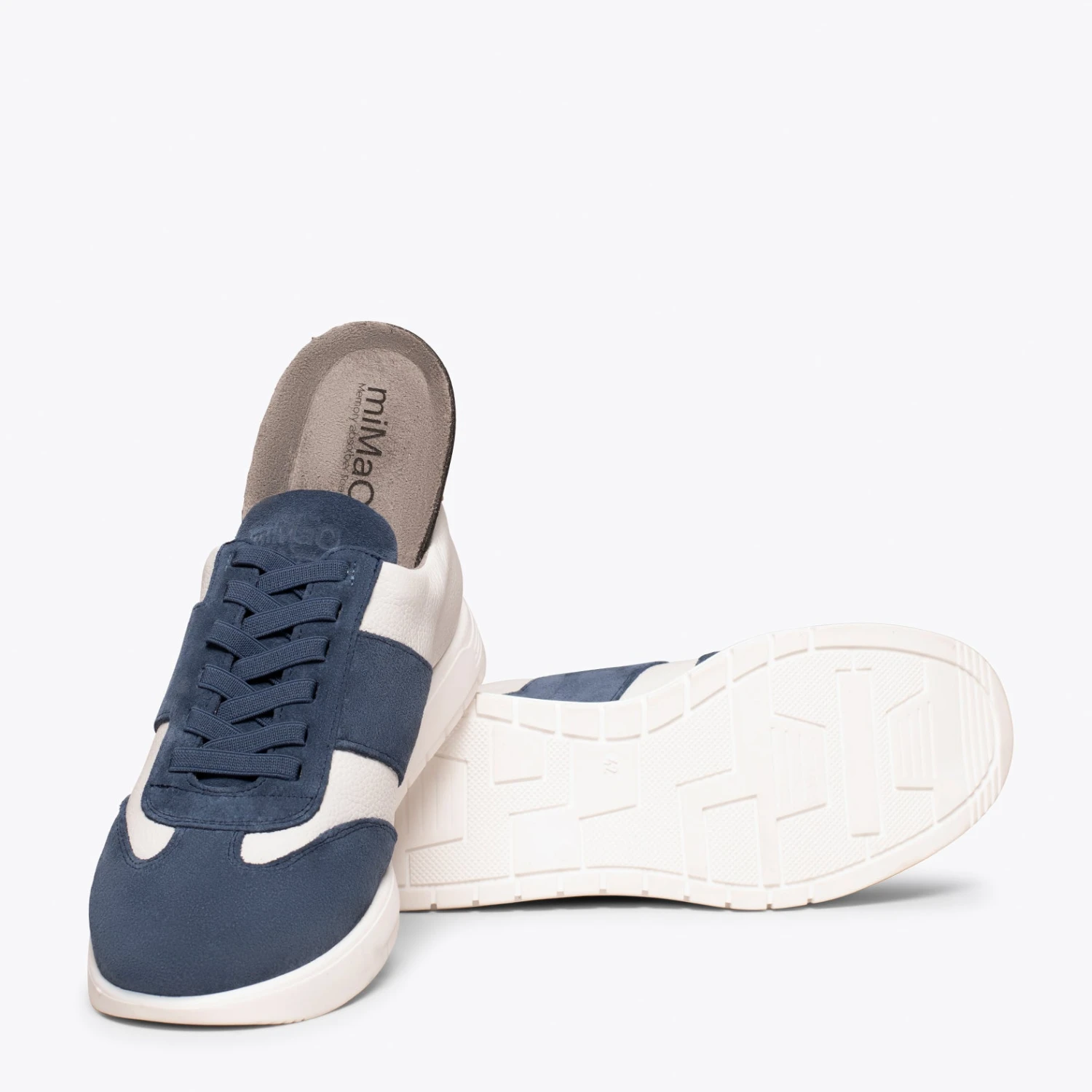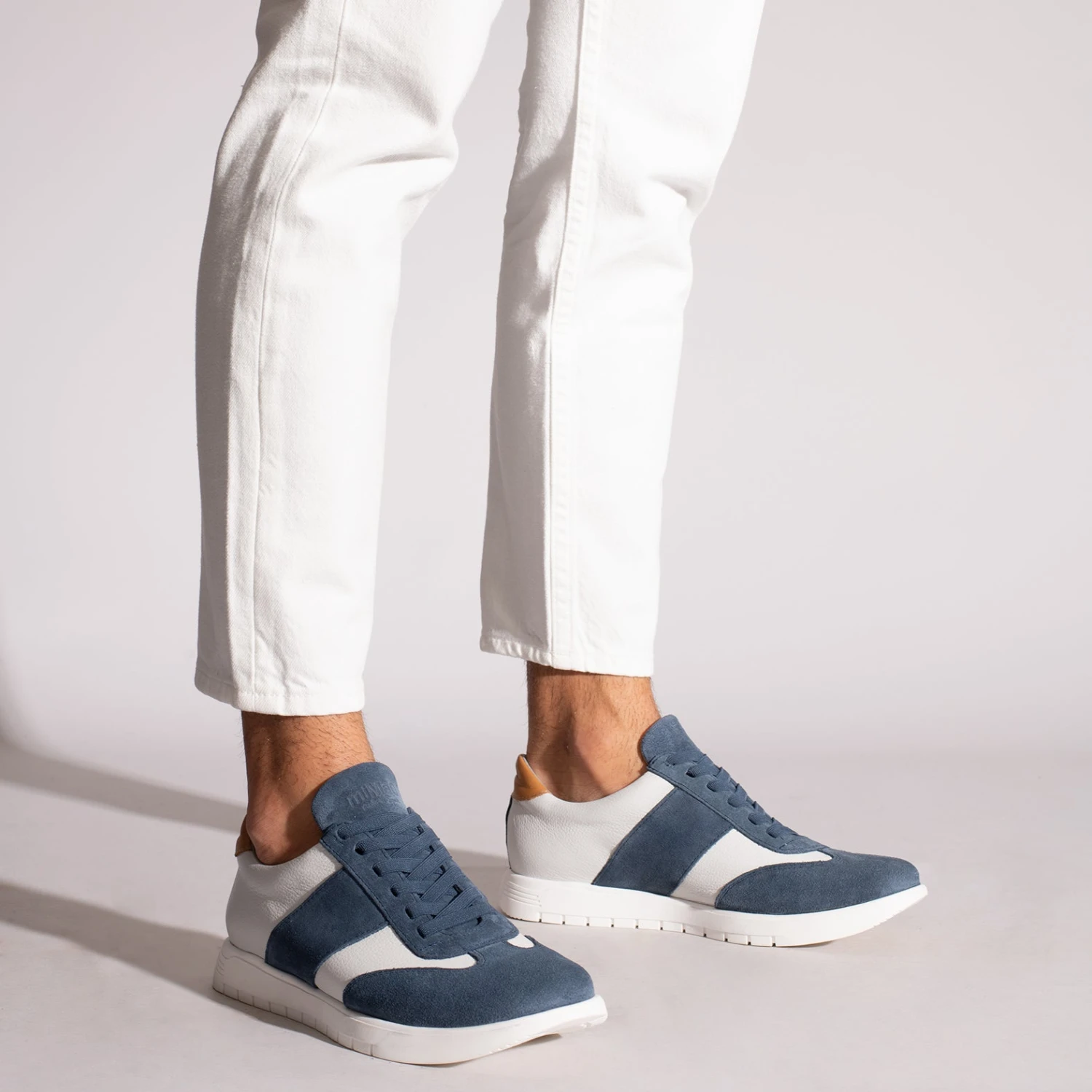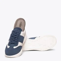 SPORT – Baskets Casual BLANC/BLEU En Cuir CombinĂ©