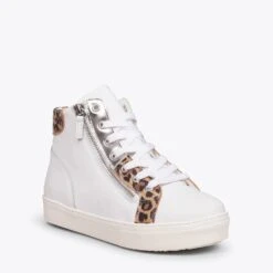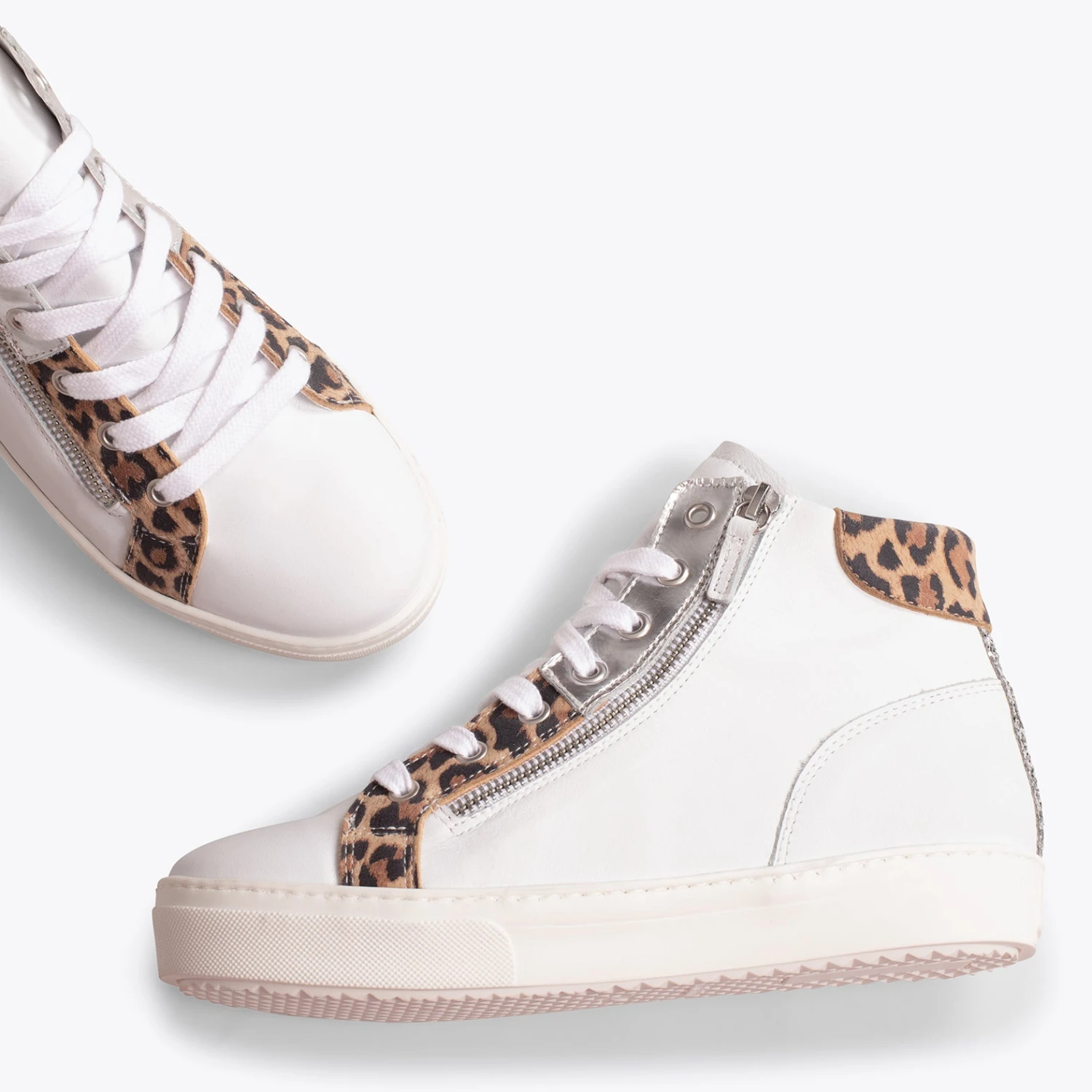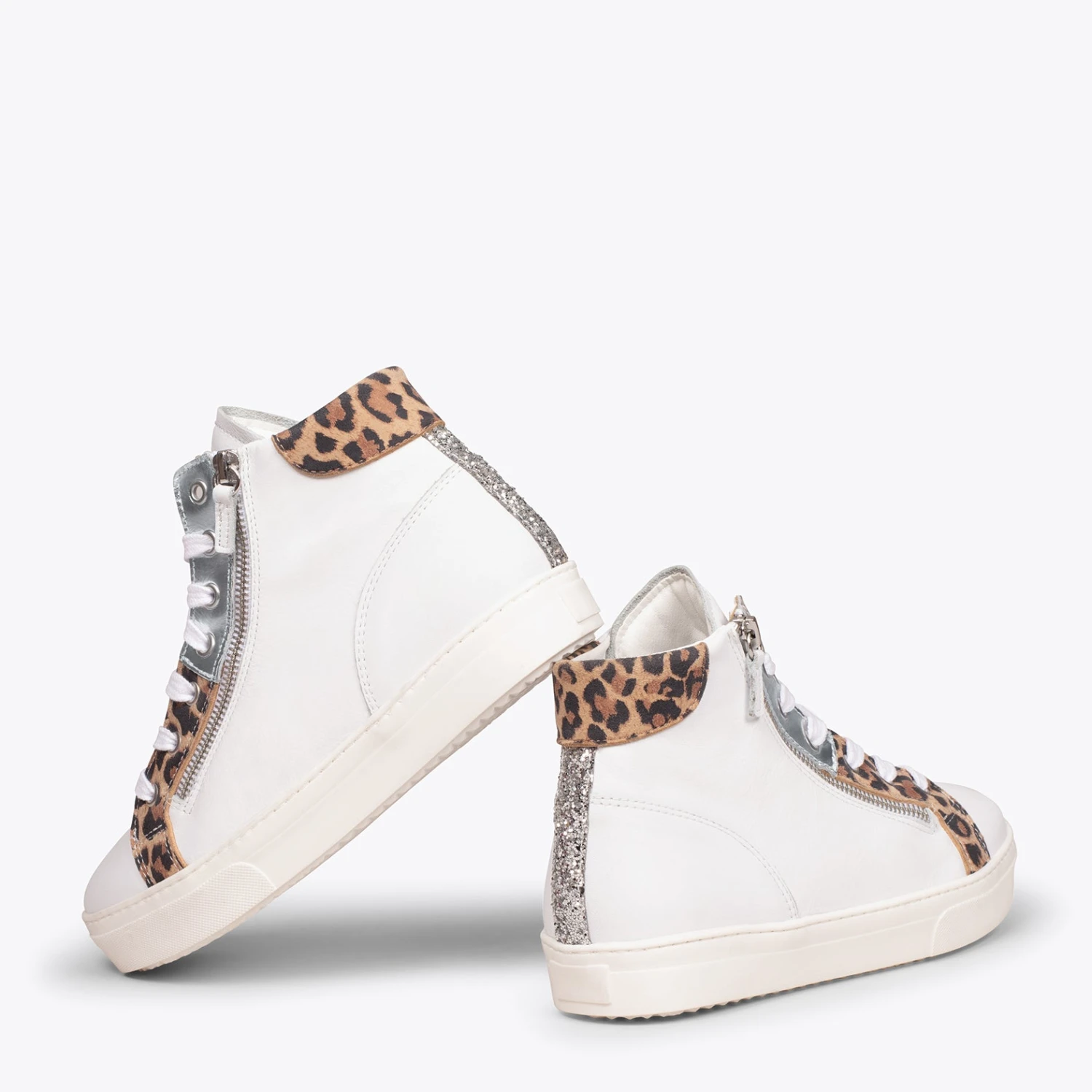 Finition languette en cuir nappa métallisé, daim animal print léopard