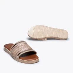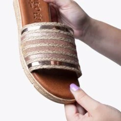 Grâce à la semelle intérieure en cuir ultra confort gel de cette sandale ROSÉ, vous aurez l’impression de marcher sur des nuages et en même temps prendra soin de vos pieds. C’est une chaussure ultra flexible, et elle accompagnera chacun de vos pas. Votre confort est assuré grâce à sa semelle de 2 cm et sa plateforme avant de 1 cm. C’est une chaussure pour femme fabriquée en Espagne.