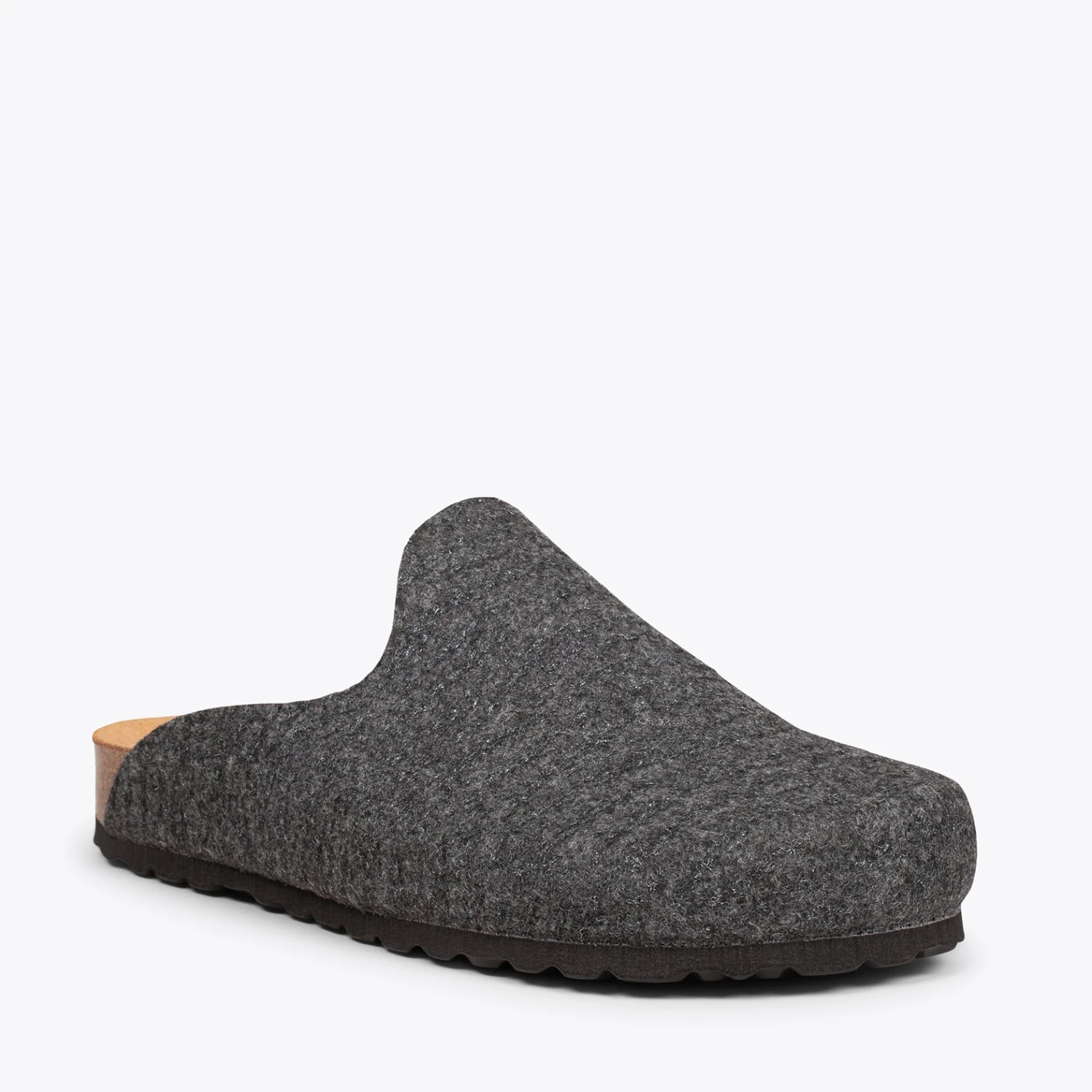Des chaussons en feutre GRIS FONCÉ pour homme