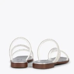 Sandales à talon pour femme en couleur ARGENTÉ avec micro-strass