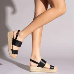 Tarifa est une sandale Ă plateforme espadrille NOIR au design intemporel, issue de la nouvelle collection d’espadrilles 2021.