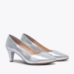 Chaussure de soirée en cuir métallisé ARGENTÉ. Une élégante chaussure à talon fin de 7 cm en cuir avec un effet métallique qui donnera une touche spéciale à votre look. Vous serez le centre d’attention avec ces chaussures. Chaussure à talon confortable avec semelle intérieure en cuir et Goutte Confort Gel. Ne perdez pas l’occasion de cette chaussure à talon en cuir métallisé ARGENTÉ. Une chaussure sophistiquée, une chaussure élégante pour femme. Essayez le confort d’une chaussure en cuir Made in Spain et commandez vos chaussures de détente sur notre site miMaO. Nouvelle saison Urban printemps- été 2020.