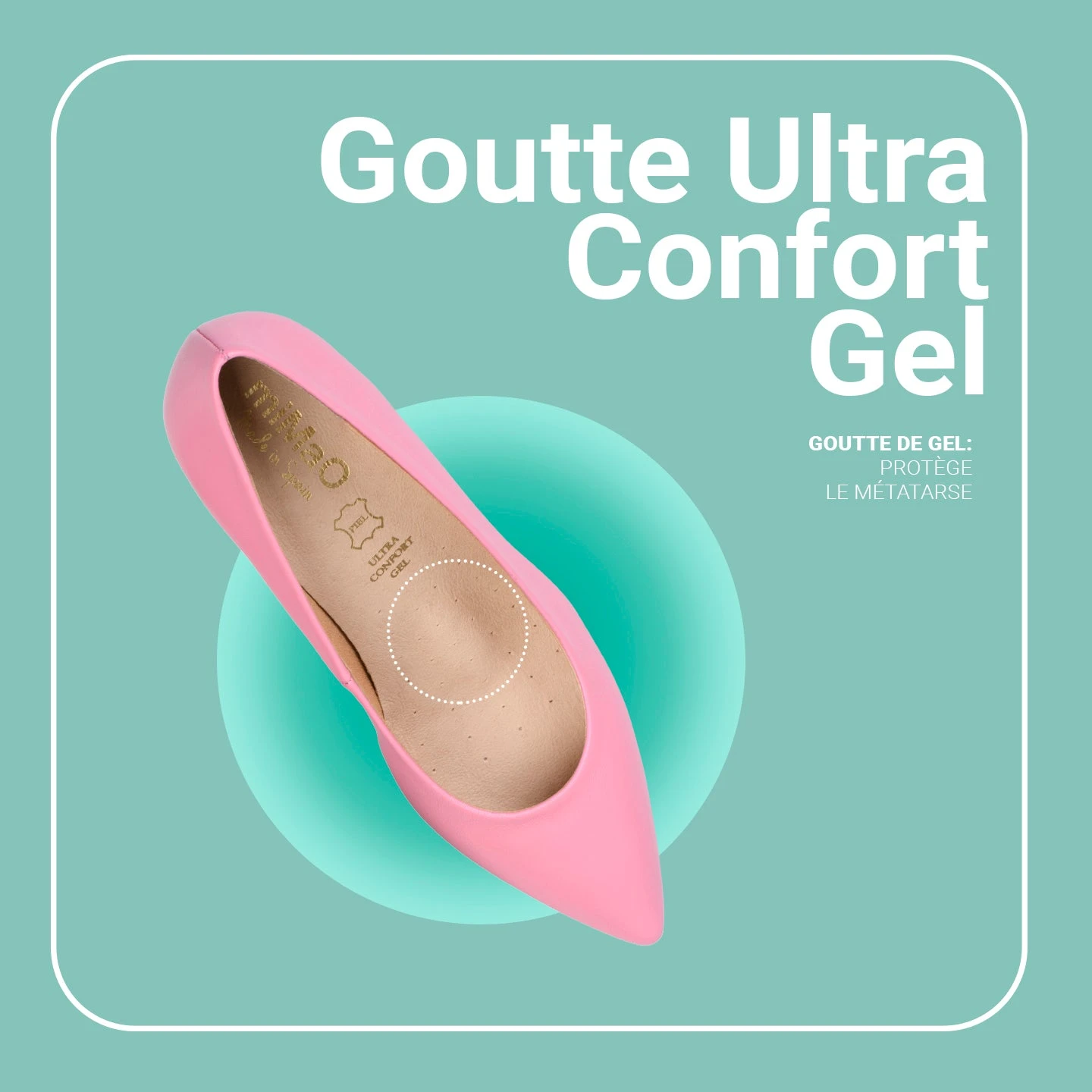 Technologie de Confort: semelle en cuir Ultra Confort Gel, respirante
