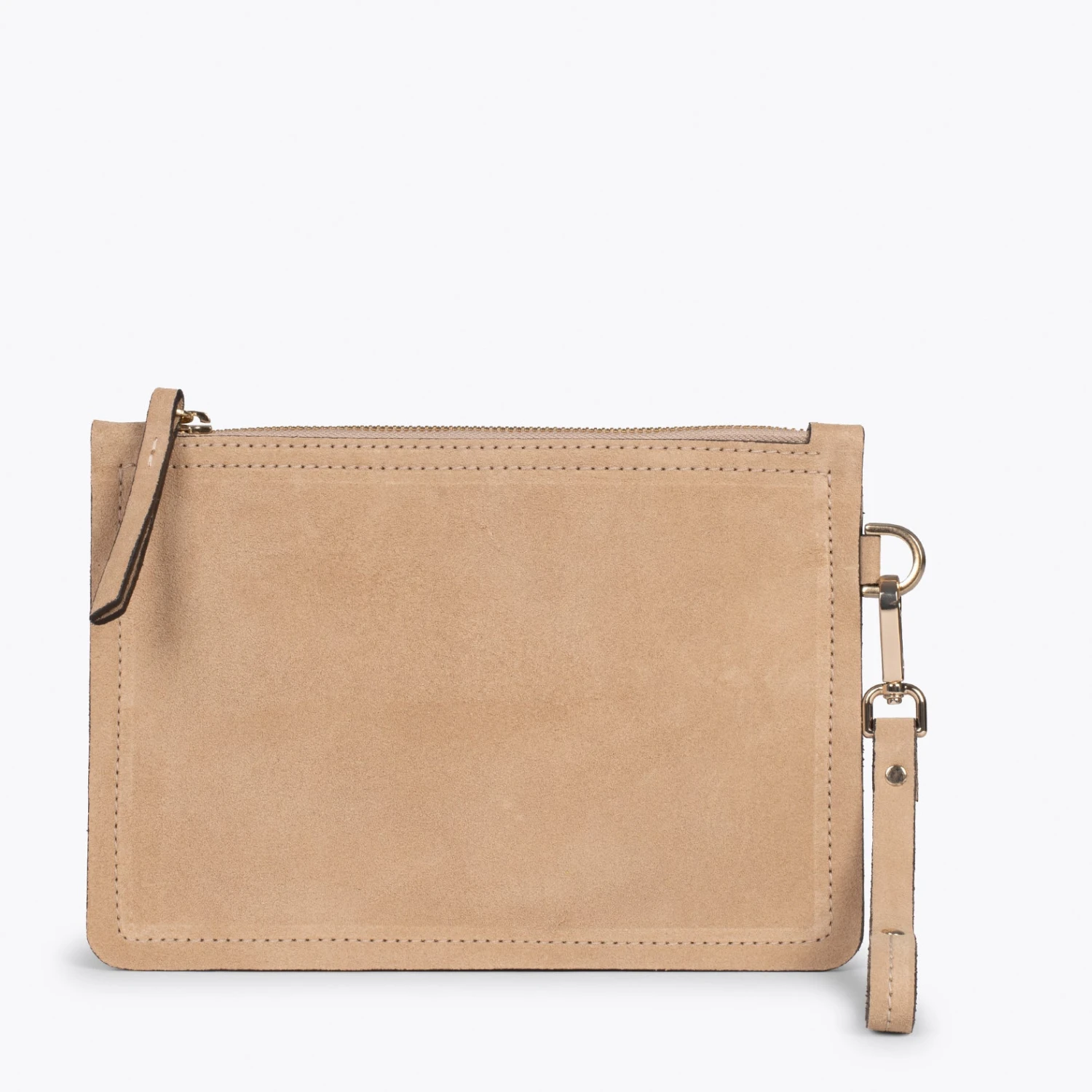 Cette pochette est dotĂ©e d’une fermeture Ă©clair sur le dessus pour une ouverture facile. Vous pouvez la porter au poignet grâce Ă sa sangle, qui peut Ă©galement ĂŞtre retirĂ©e si vous le prĂ©fĂ©rez.