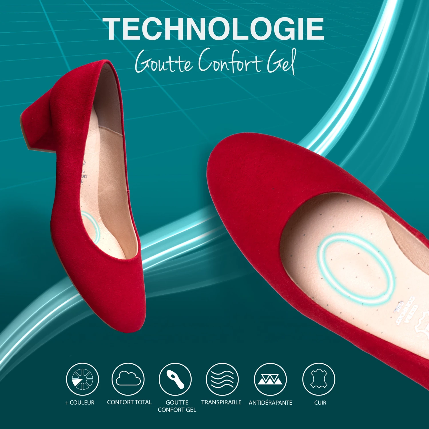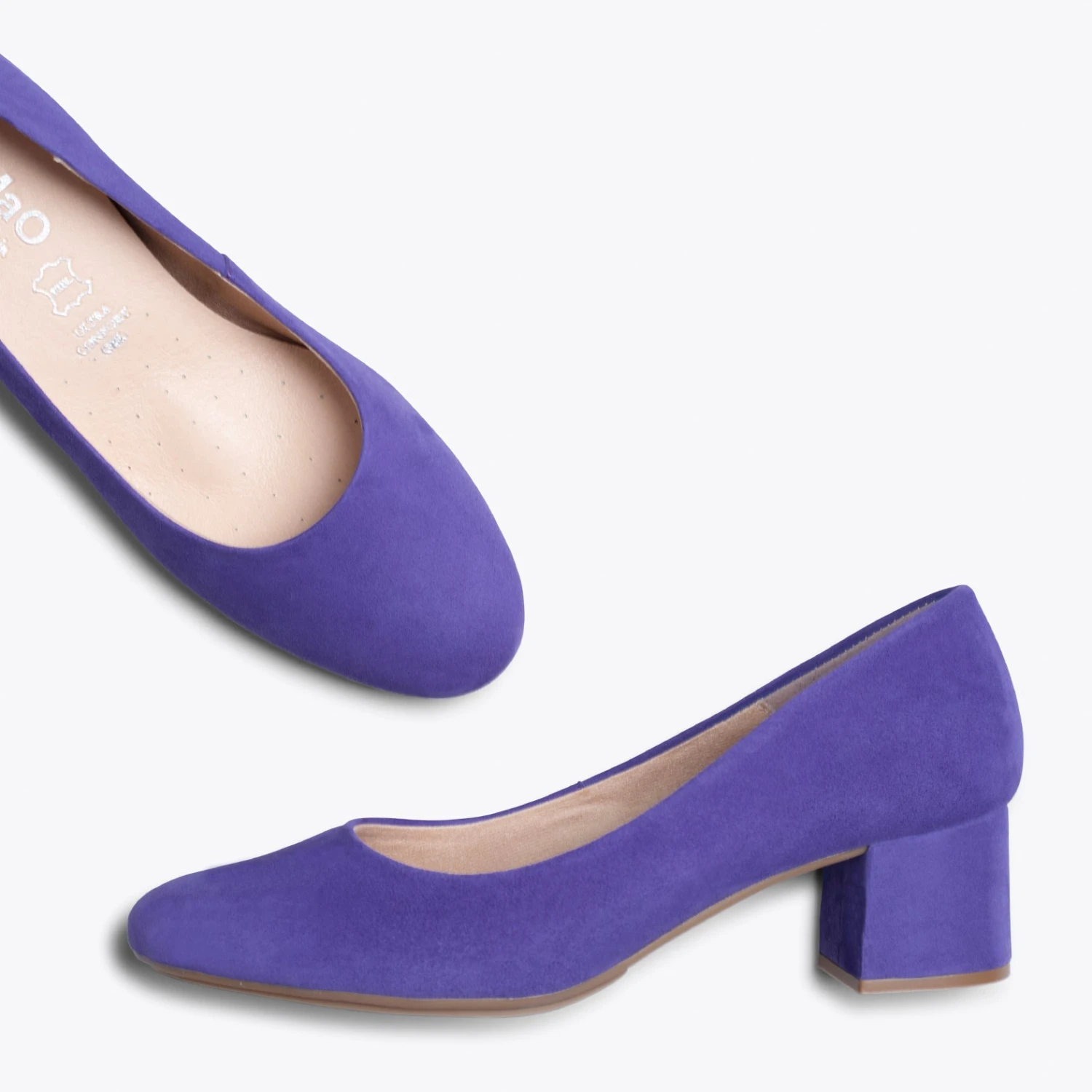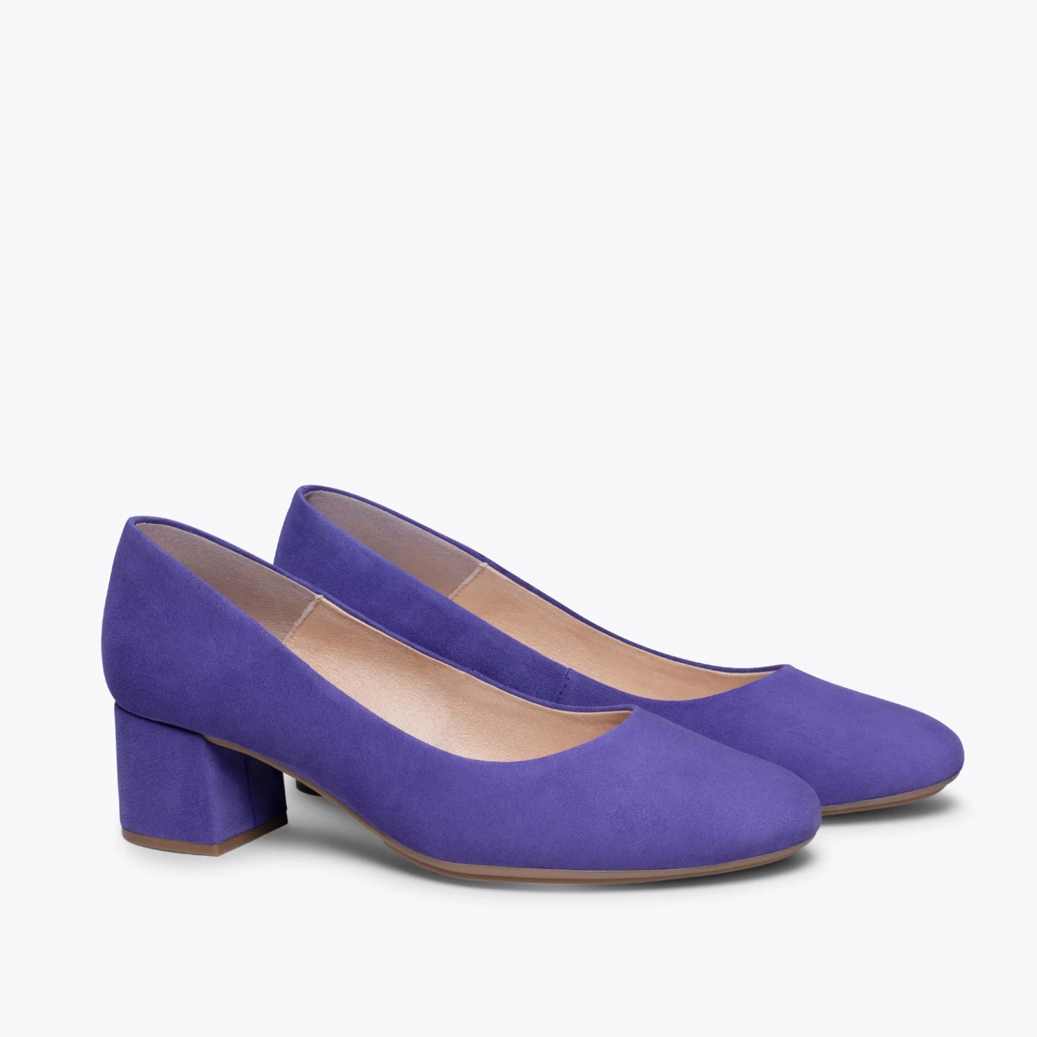 Escarpin à bout rond pour femme VIOLET en daim et fabriqué en Espagne. Des talons VIOLET parfaits pour tous vos outfits. Avec une semelle de gel et goutte ultra confort gel qui prend soin de vos dos et de vos pieds pour devenir vos escarpins préférés et les plus confortables au quotidien.
