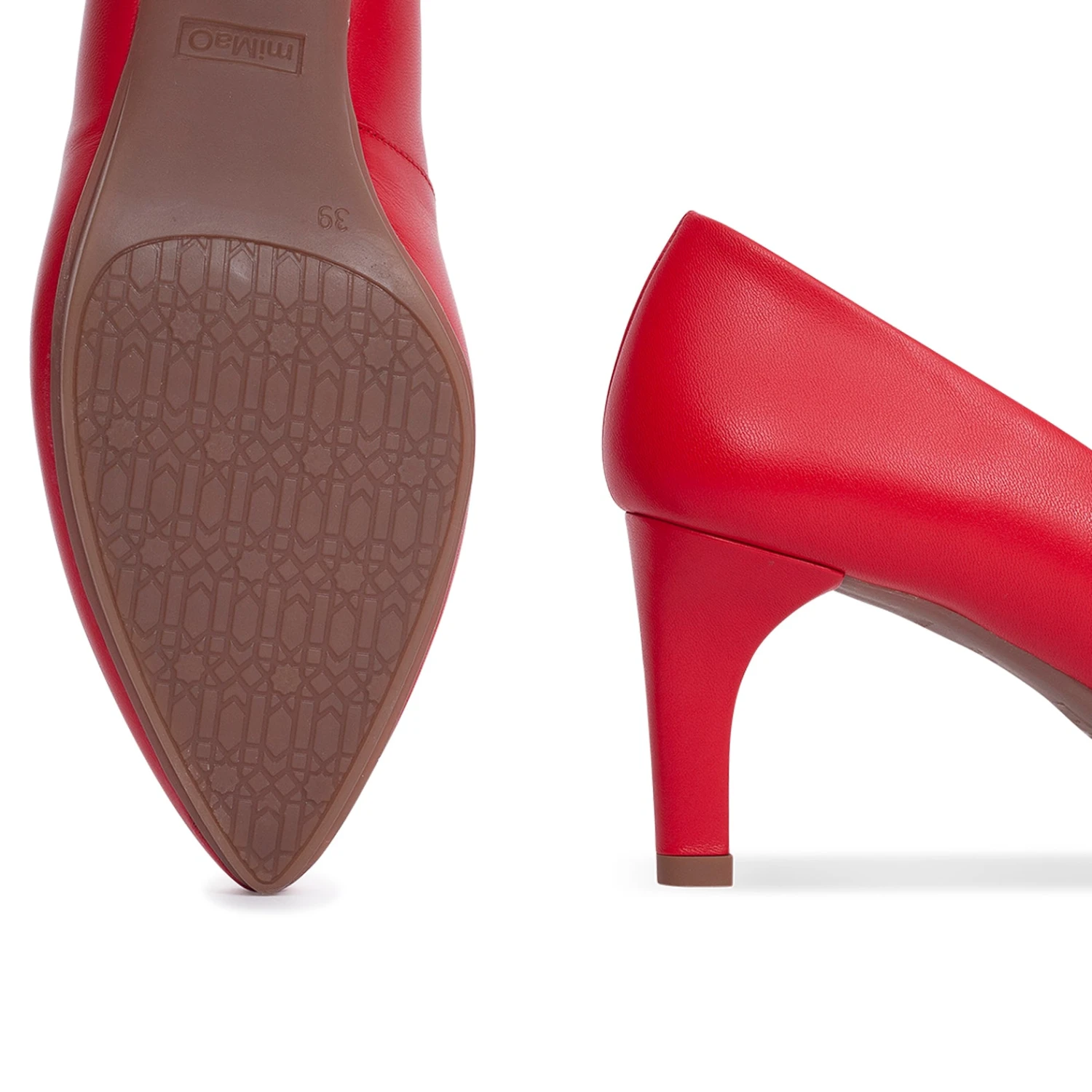 La tendance de cette saison dans vos escarpins miMao rouge  avec semelle intérieure en confort gel et semelle extérieure ultra souple.