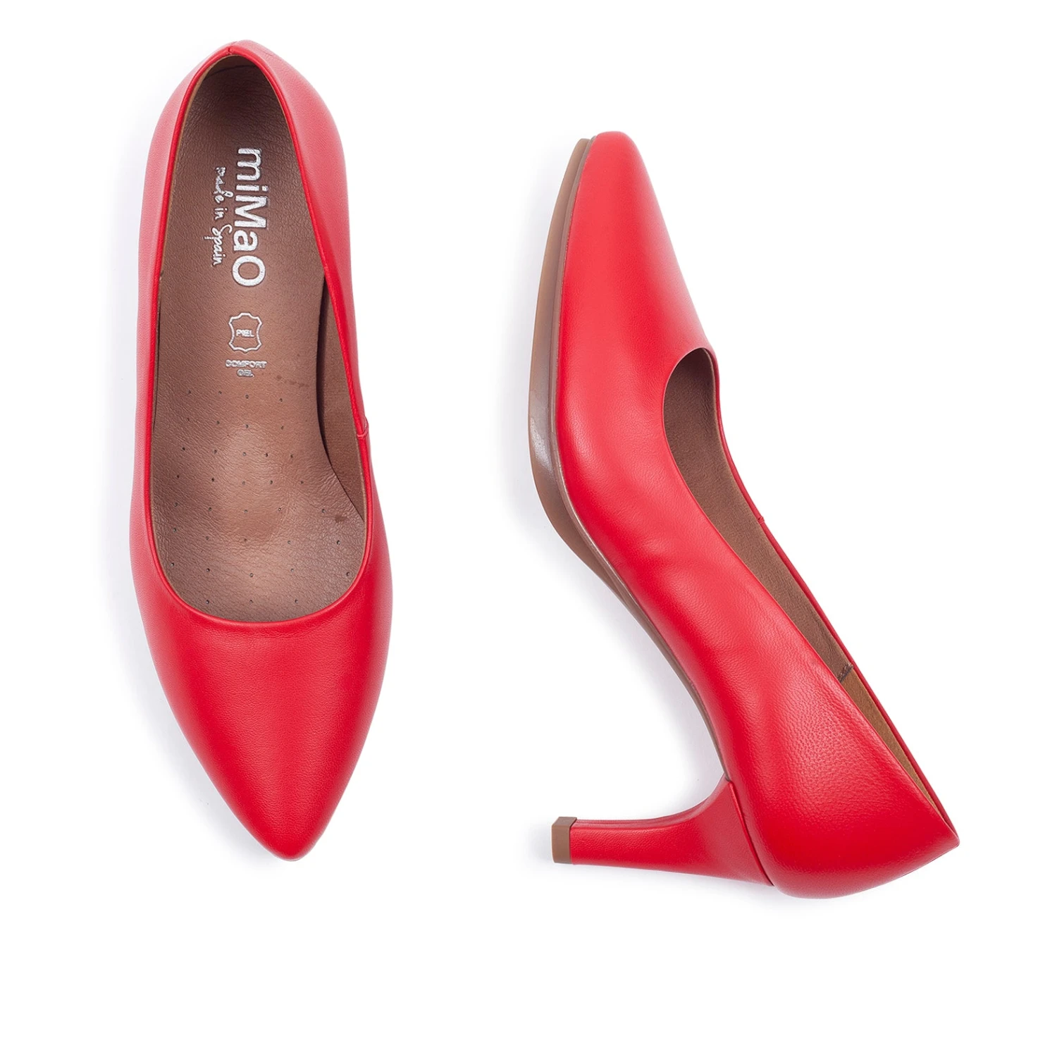 Escarpin à talon pour femme 100% cuir Rouge et fabriqué en Espagne.