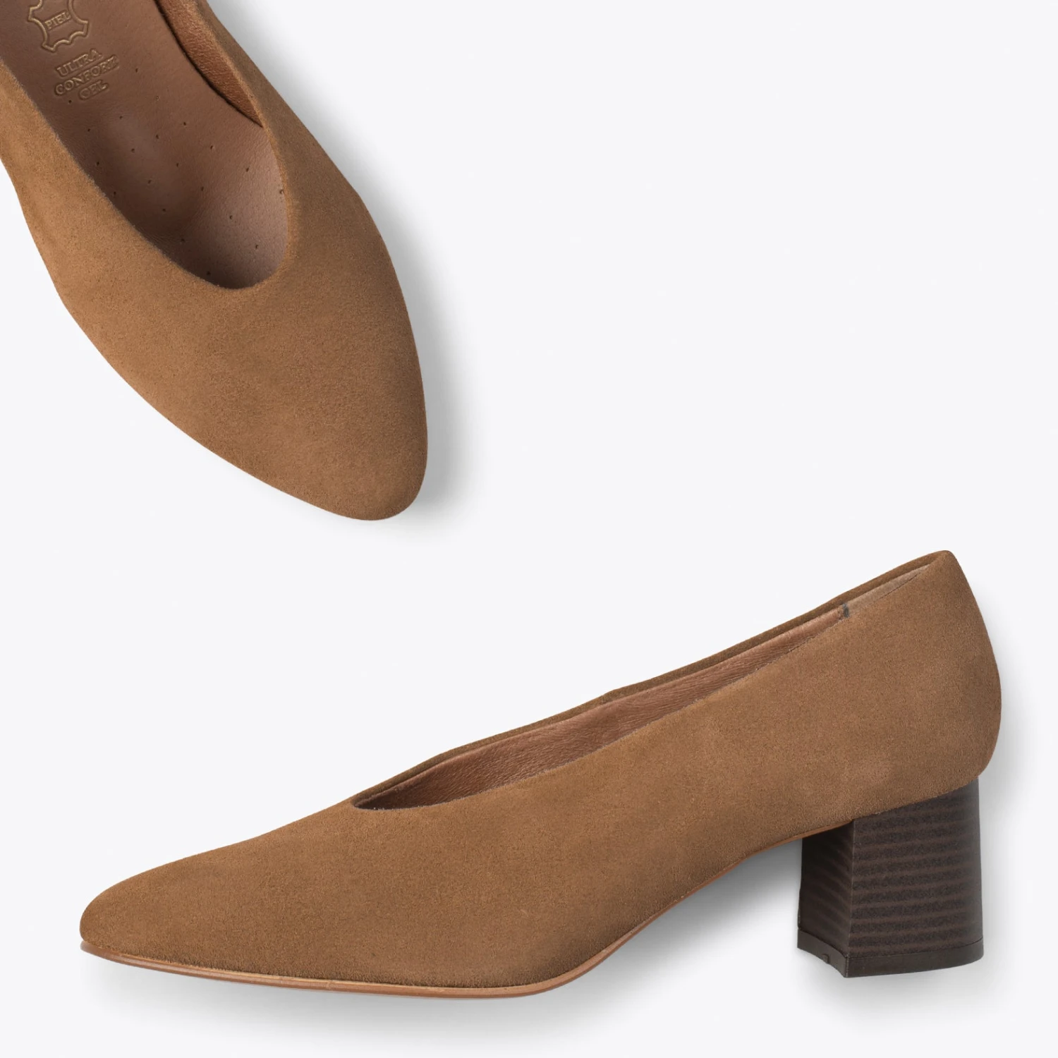 URBAN STYLE – Chaussures à Talon Bas En Nubuck CAMEL