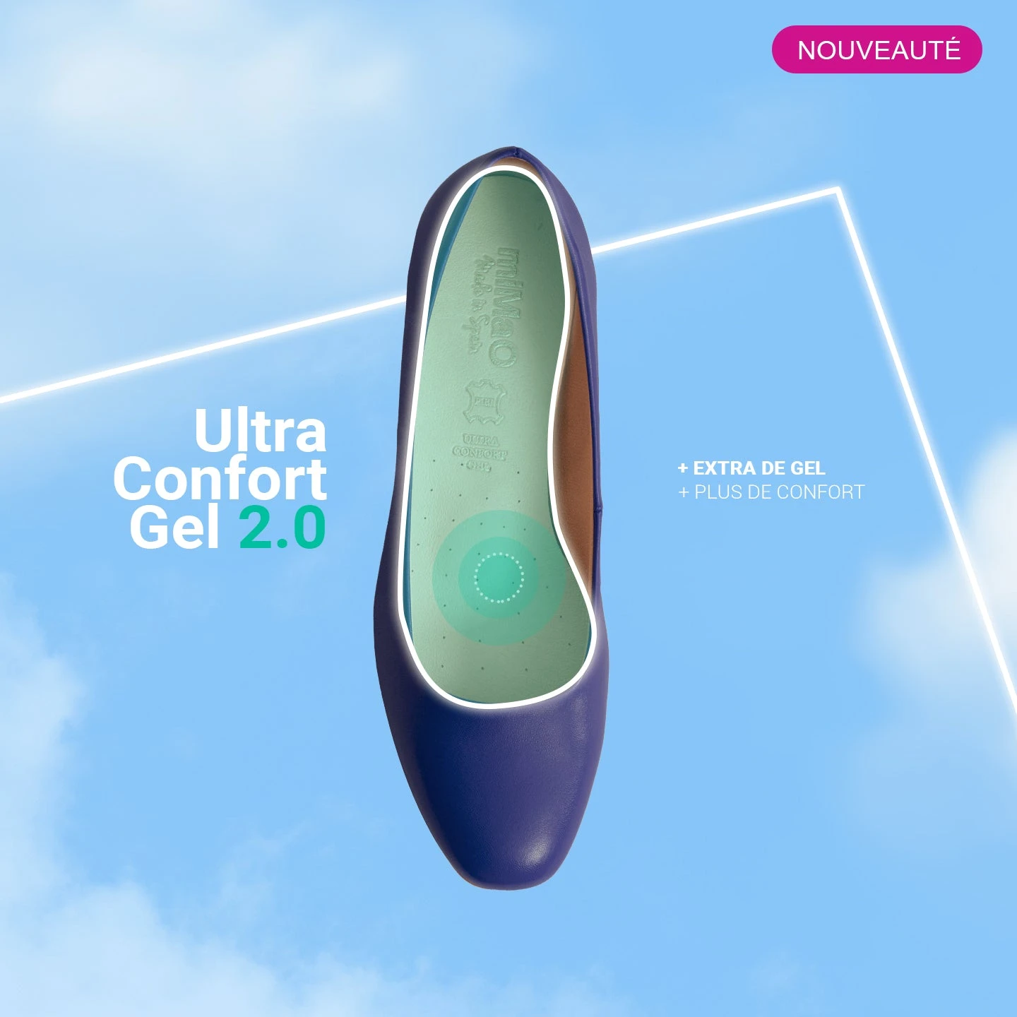 Technologie de confort: Semelle intérieure en cuir Ultra Confort Gel 2.0 avec Goutte, respirante